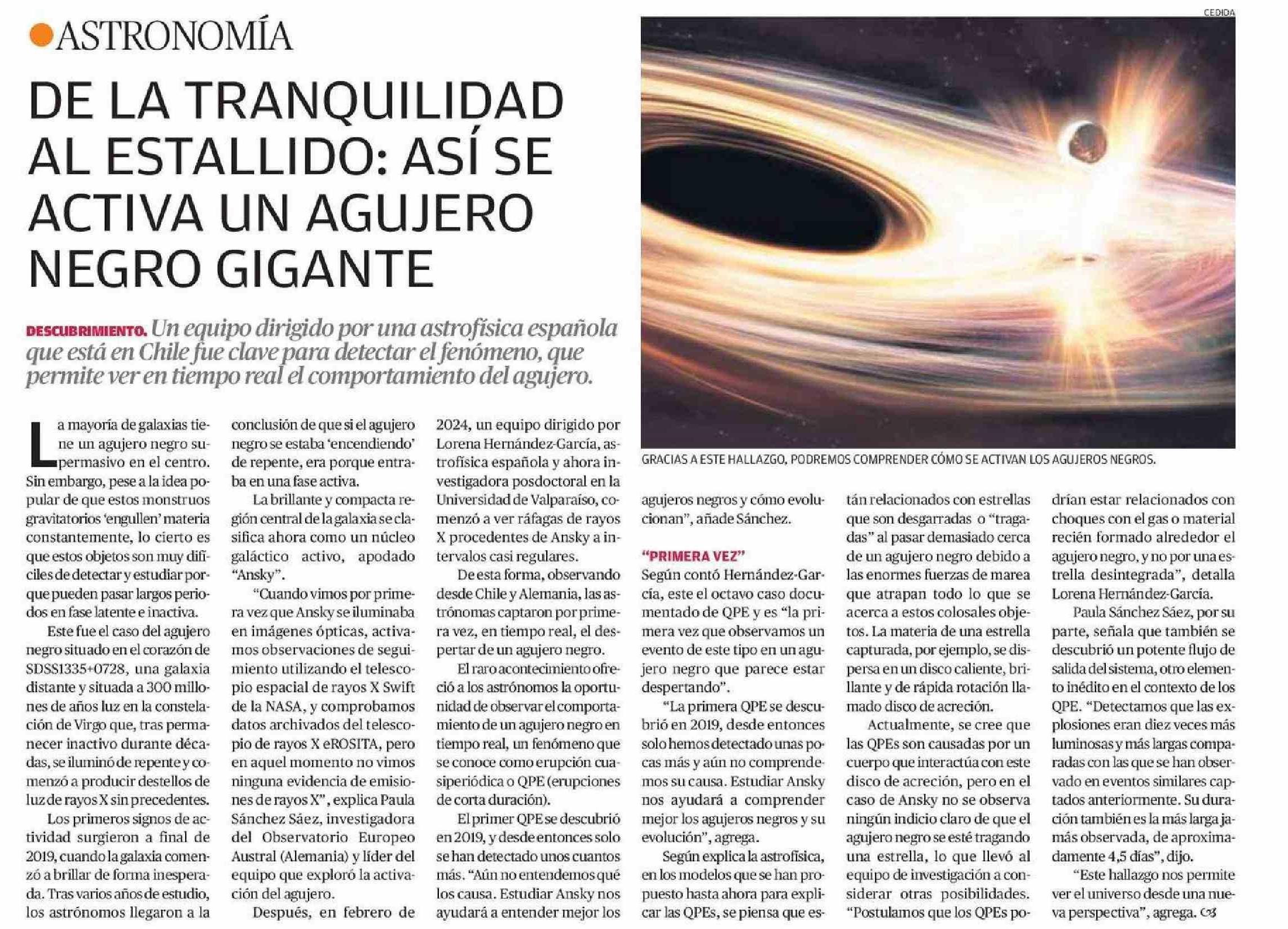 DE LA TRANQUILIDAD AL ESTALLIDO: ASÍ SE ACTIVA UN AGUJERO NEGRO GIGANTE 12-04-2025 El Mercurio de Calama |