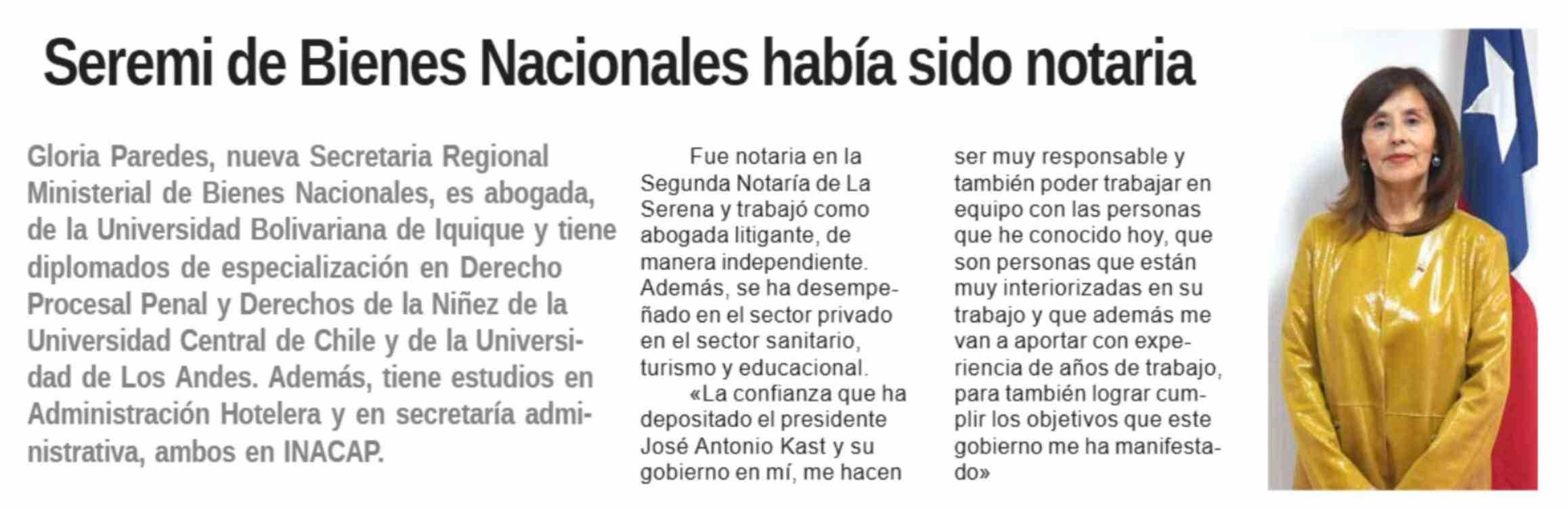 Seremi de Bienes Nacionales había sido notaria 09-04-2026 Diario la Región |