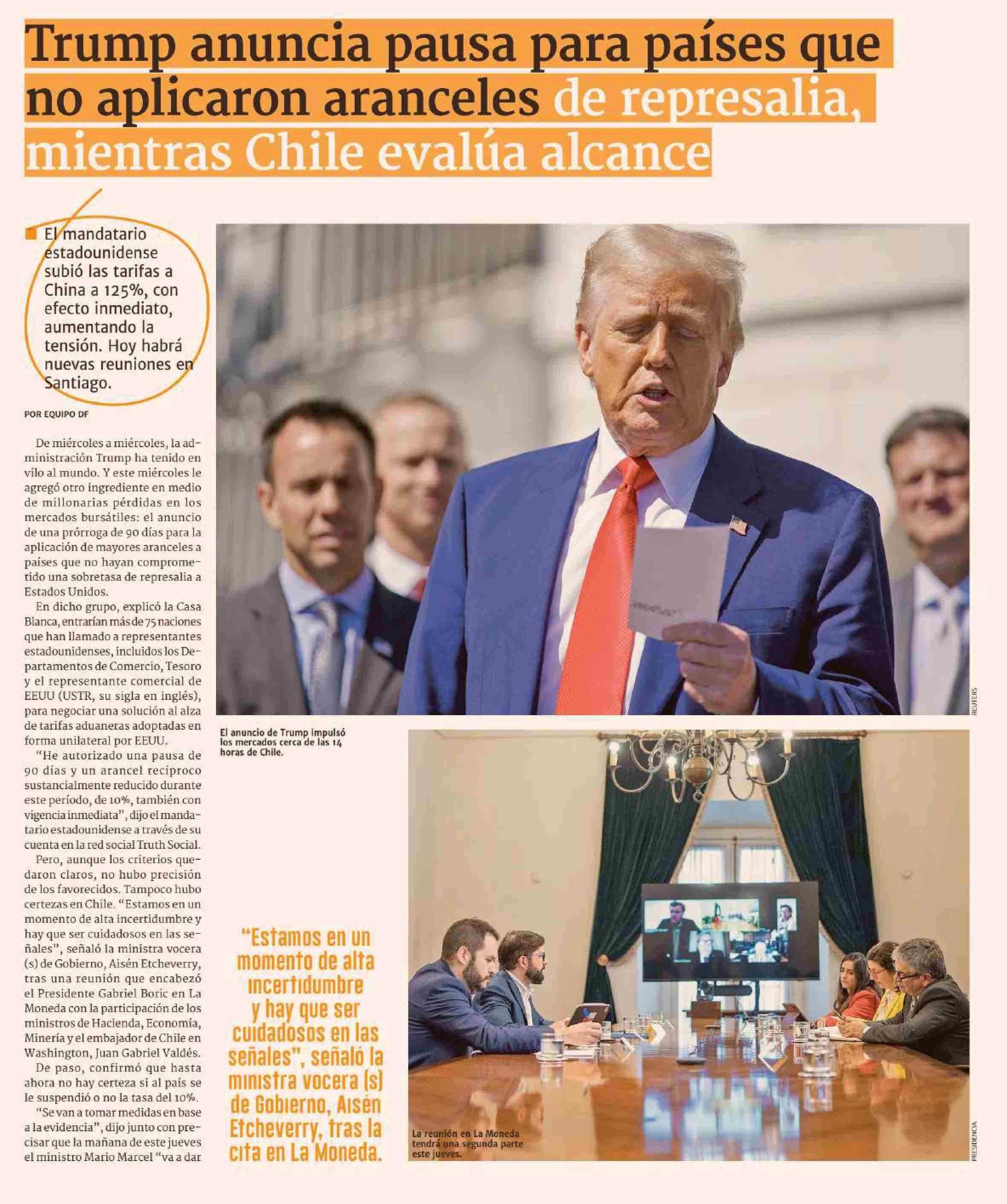Título: Trump anuncia pausa para países que no aplicaron aranceles de represalia, mientras Chile evalúa alcance