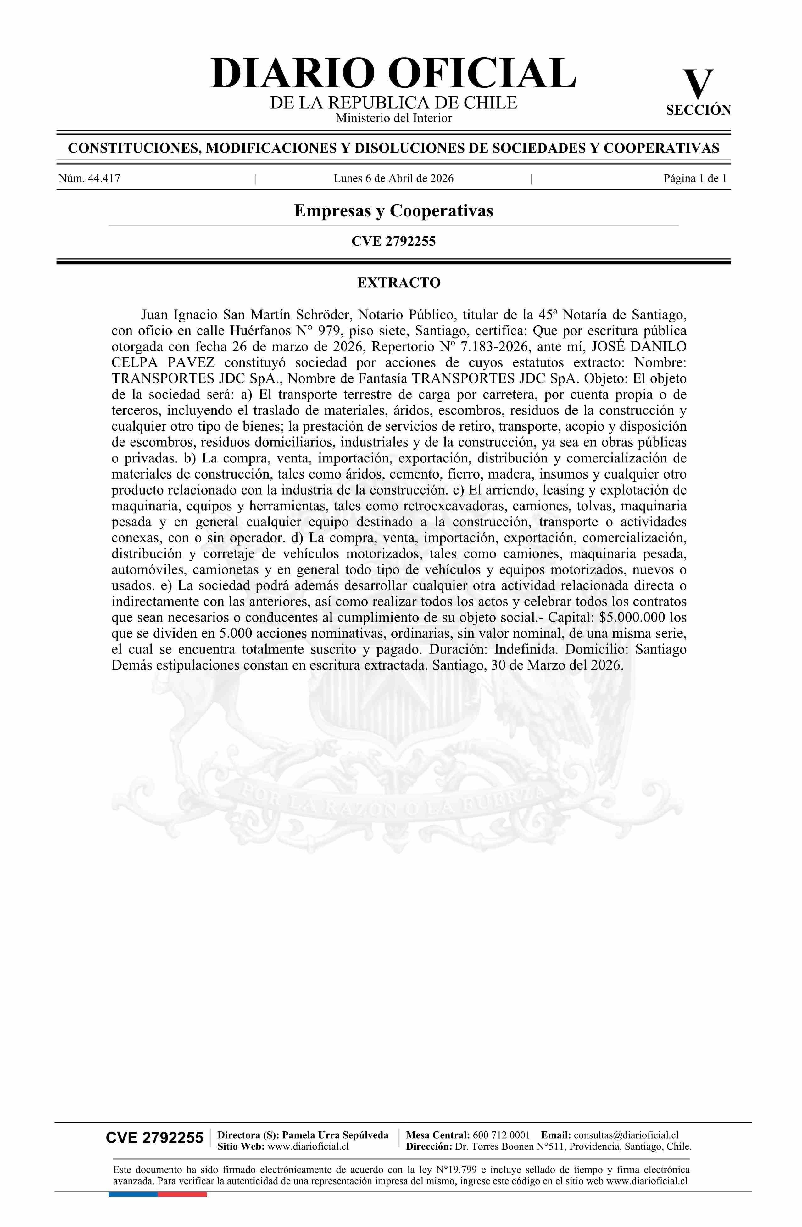 Título: TRANSPORTES JDC SpA
