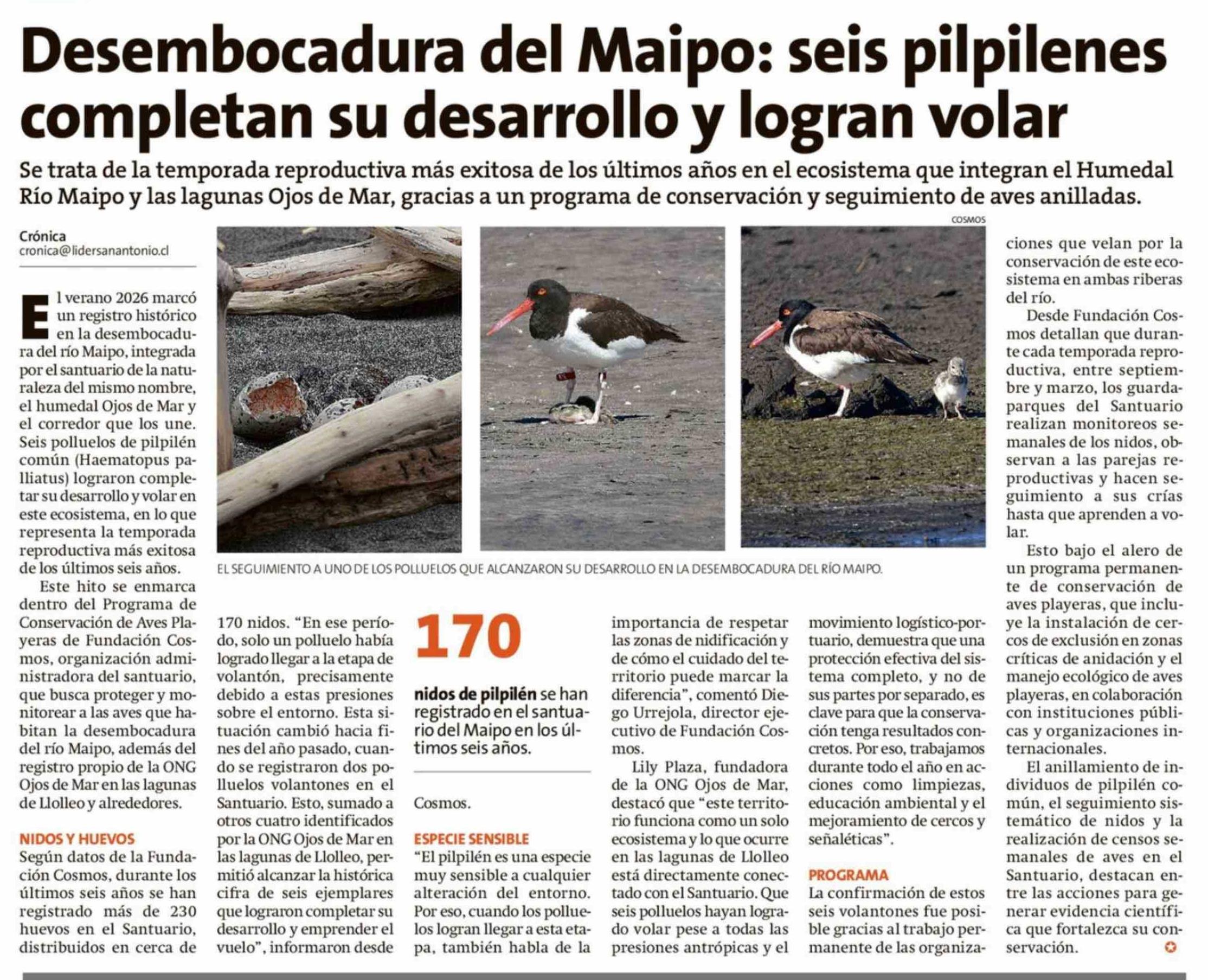 Desembocadura del Maipo: seis pilpilenes completan su desarrollo y logran volar 14-02-2026 El Líder |
