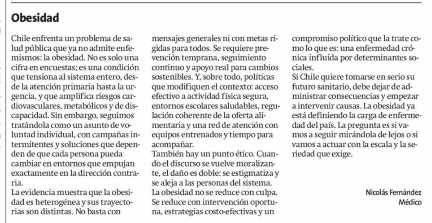 Cartas: Obesidad