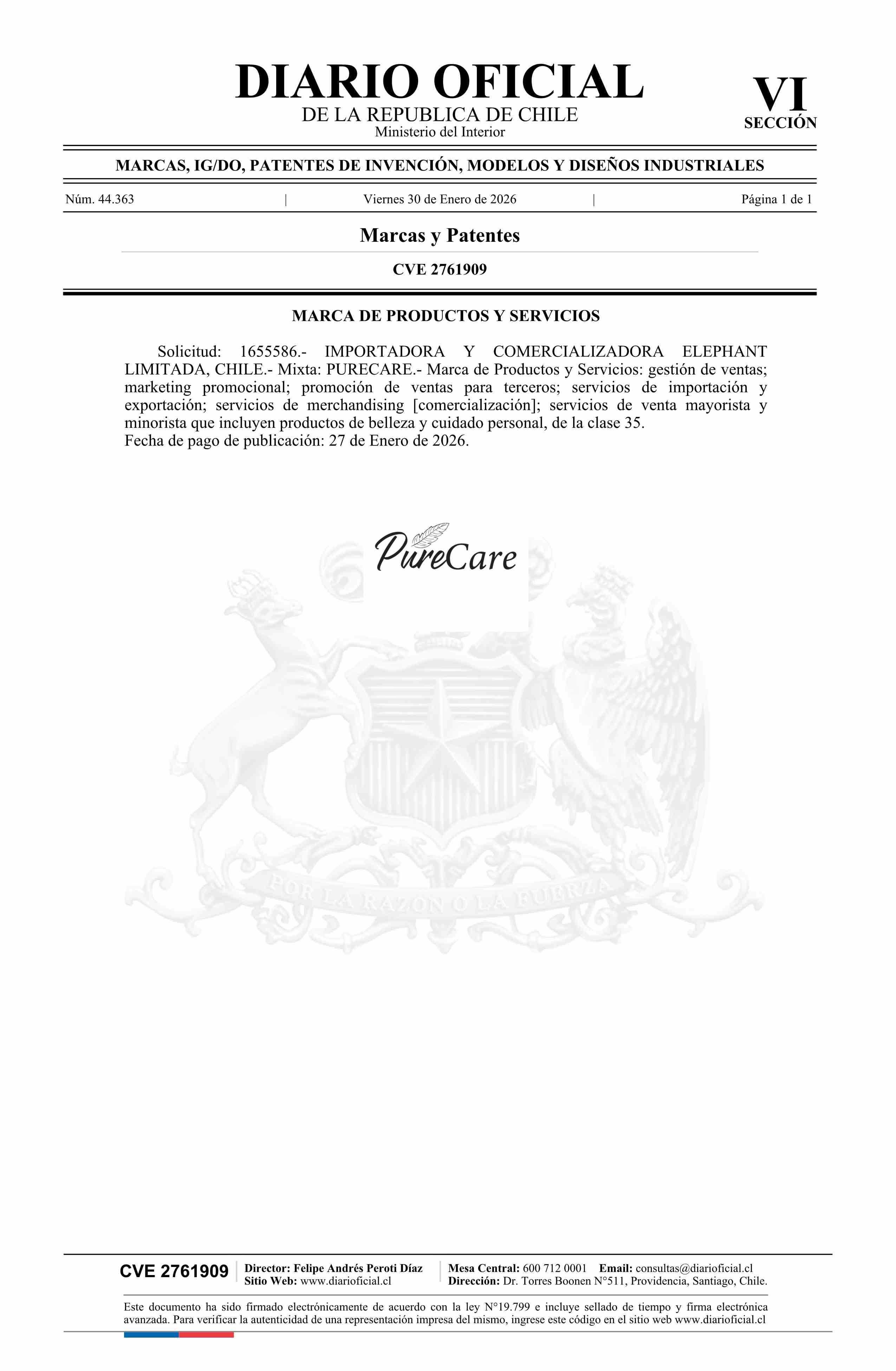 Título: Solicitud número 1655586.- PURECARE