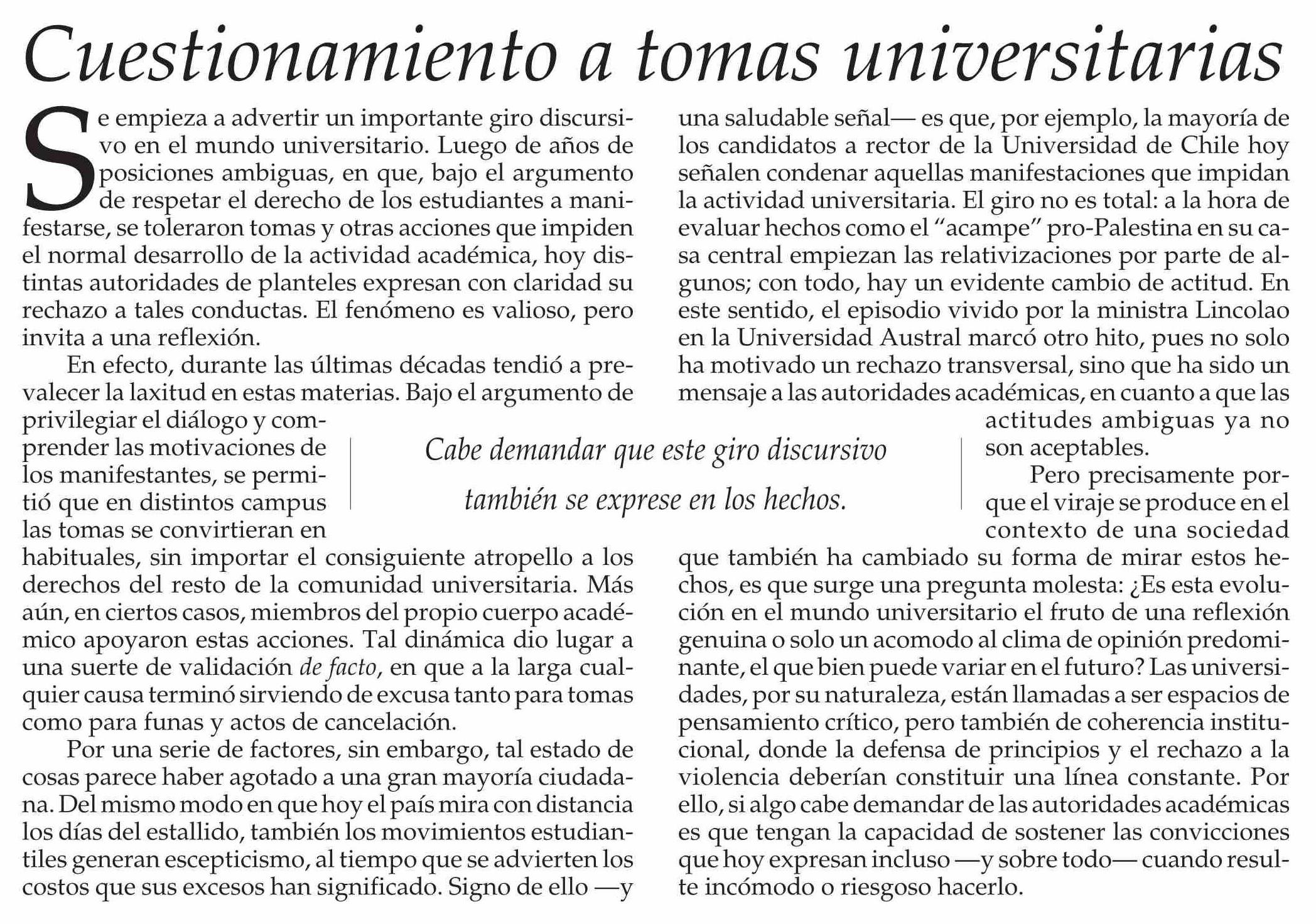 Título: Editorial: Cuestionamiento a tomas universitarias