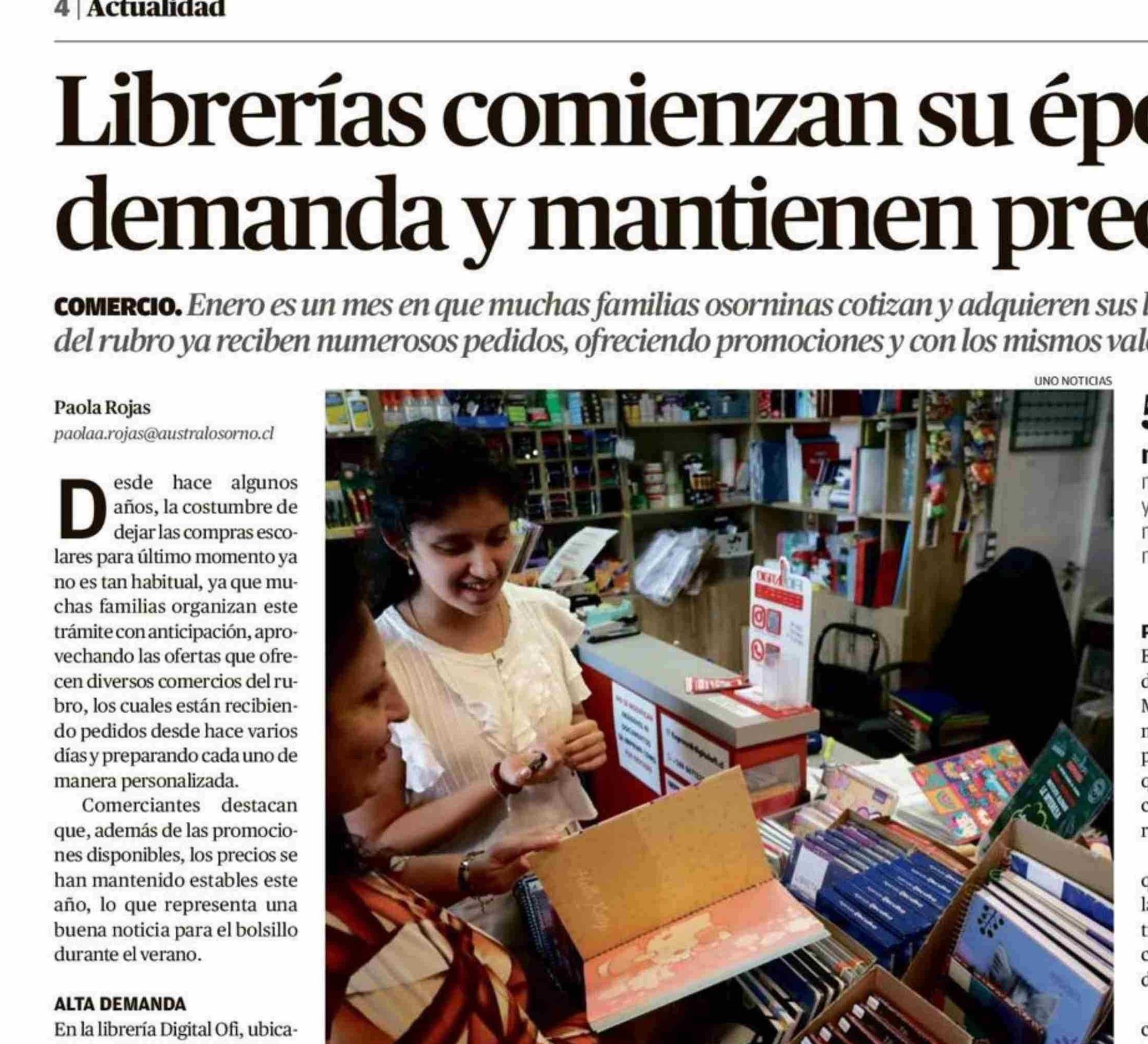 Librerías comienzan su época de alta demanda y mantienen precios de útiles 20-01-2026 El Austral de Osorno |