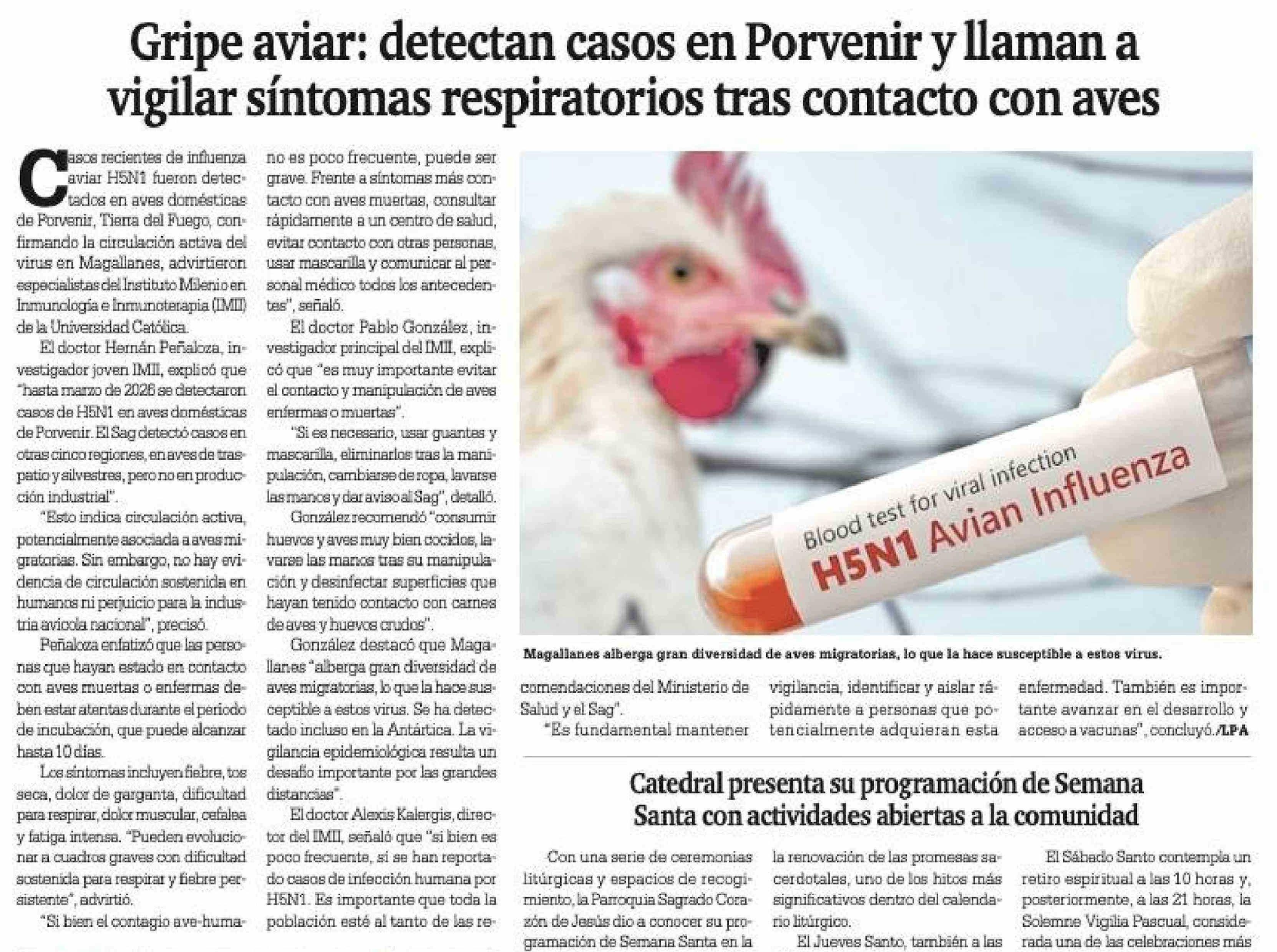 Título: Gripe aviar: detectan casos en Porvenir y llaman a vigilar síntomas respiratorios tras contacto con aves