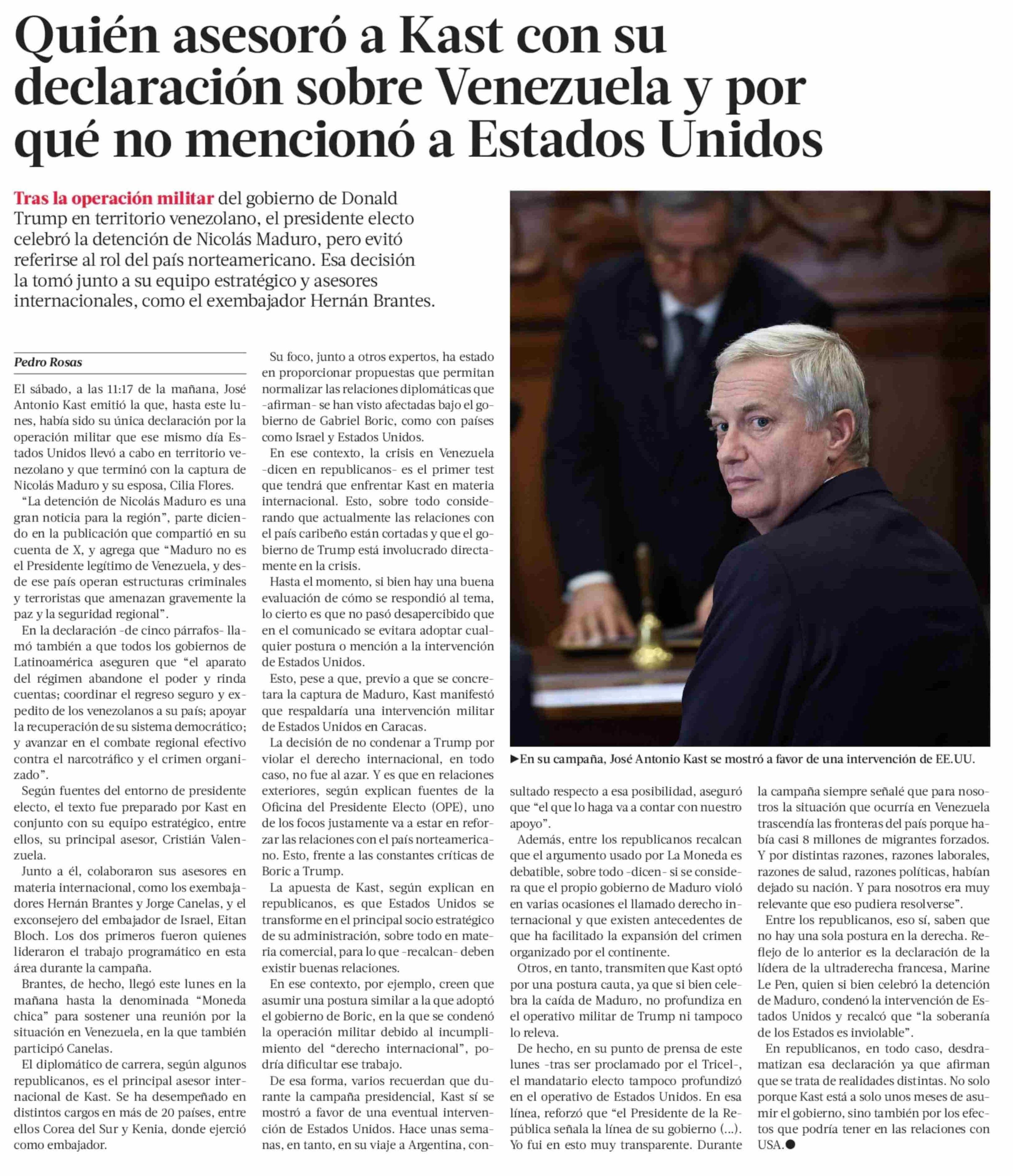 Título: Quién asesoró a Kast con su declaración sobre Venezuela y por qué no mencionó a Estados Unidos