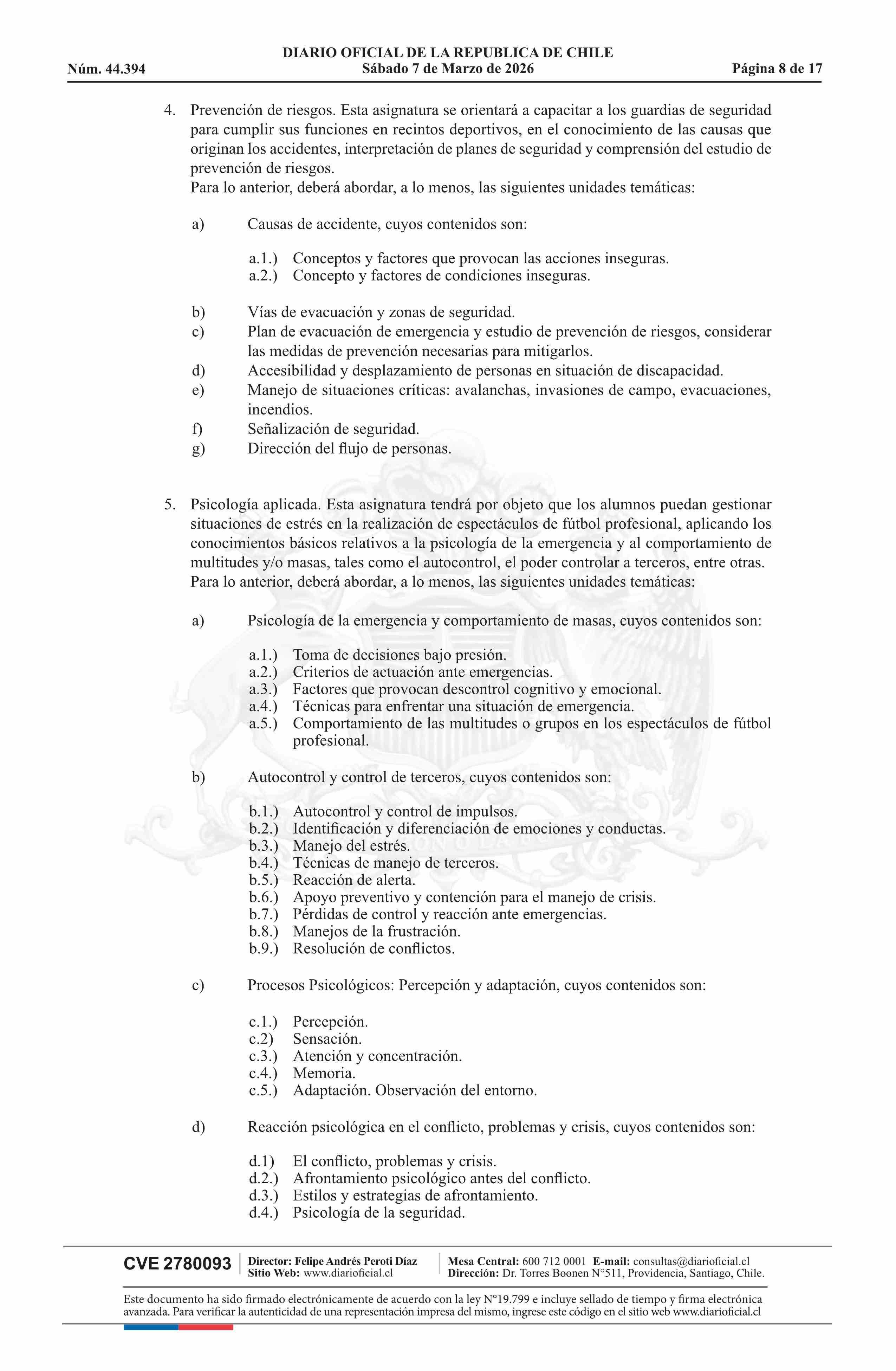 Título: Resolución exenta número 830, de 2026.- Aprueba instrucciones generales sobre capacitación especializada en seguridad privada aplicables a los guardias de seguridad en los espectáculos de fútbol profesional