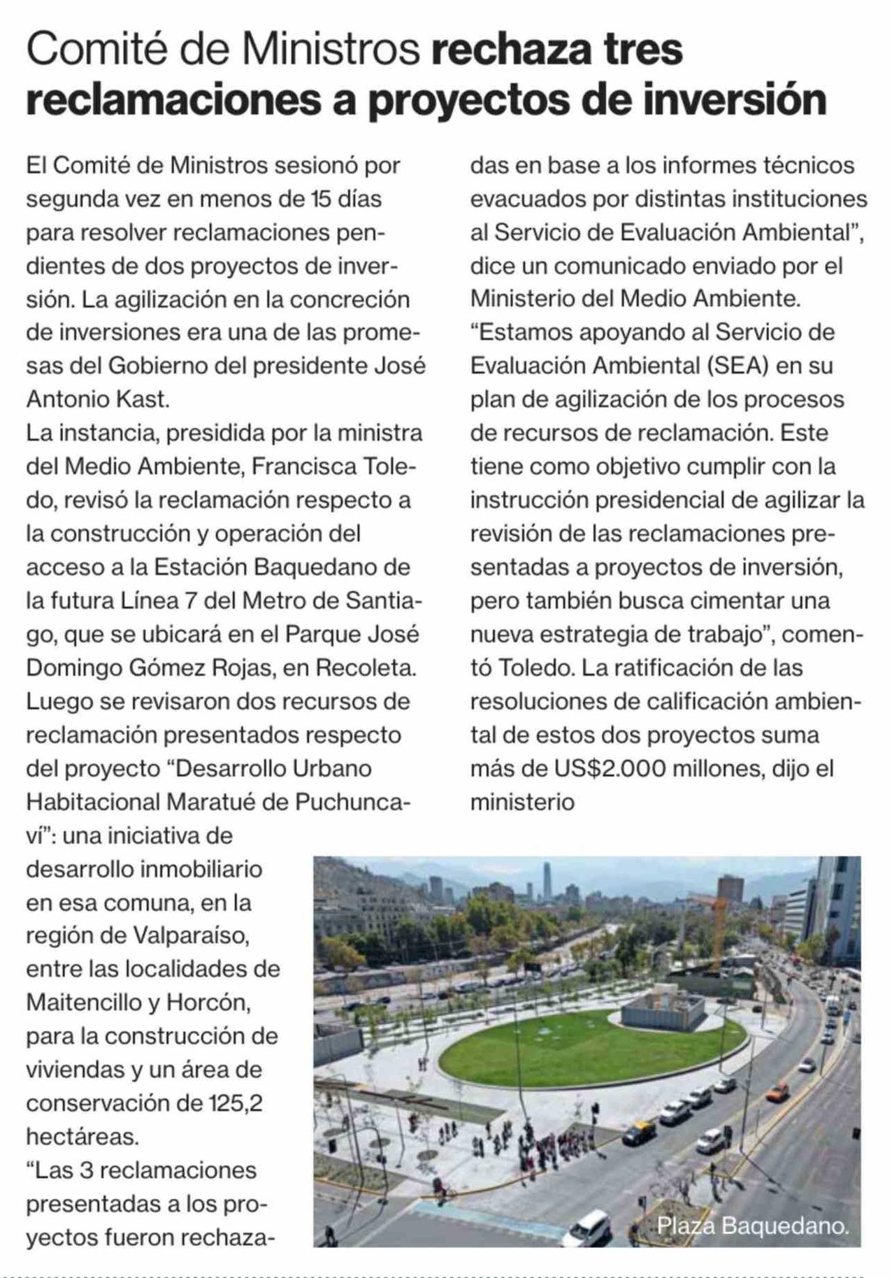 Título: Comité de Ministros rechaza tres reclamaciones a proyectos de inversión