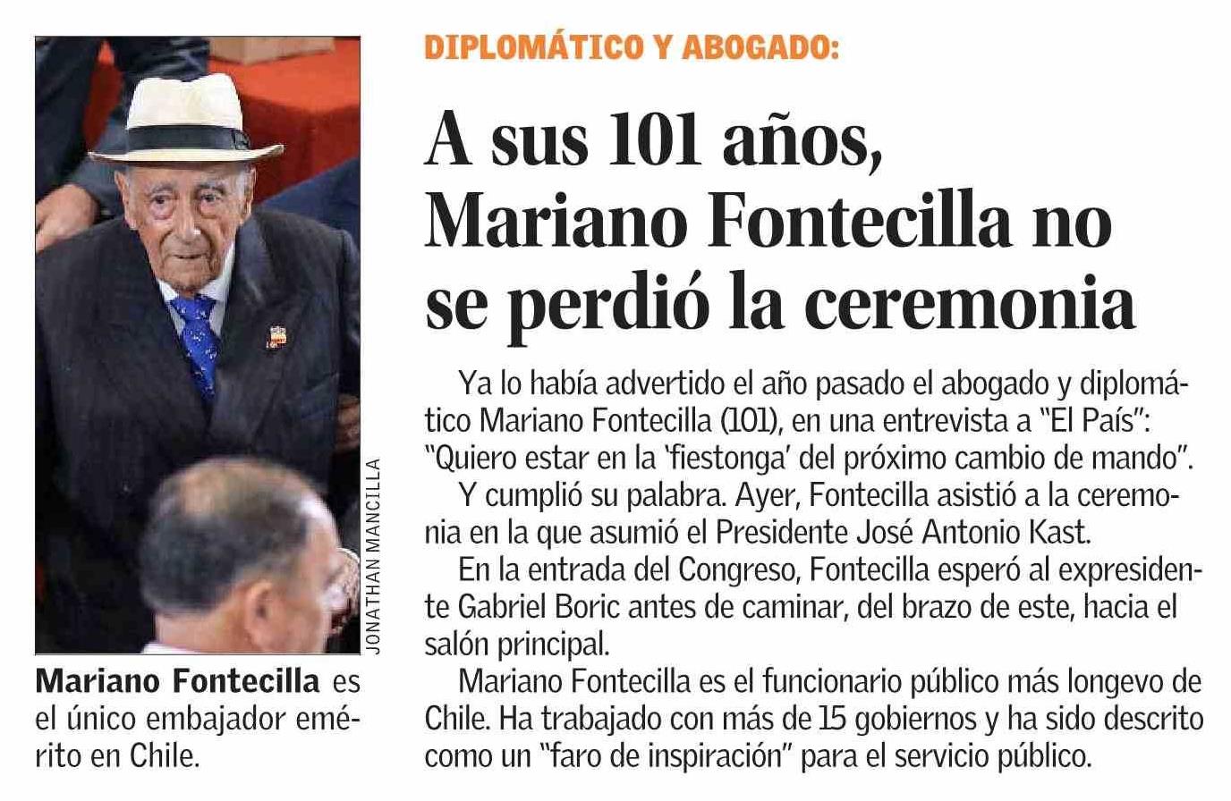 A sus 101 años, Mariano Fontecilla no se perdió la ceremonia 12-03-2026 El Mercurio |