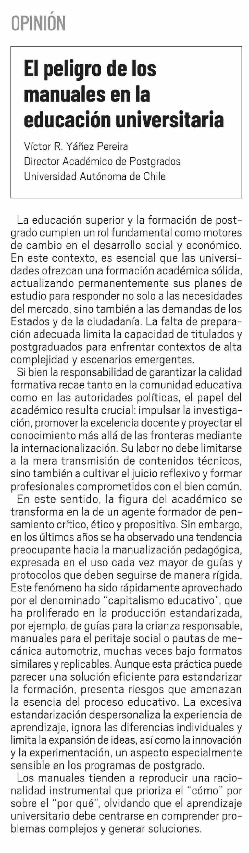 Título: Columnas de Opinión: El peligro de los manuales en la educación universitaria
