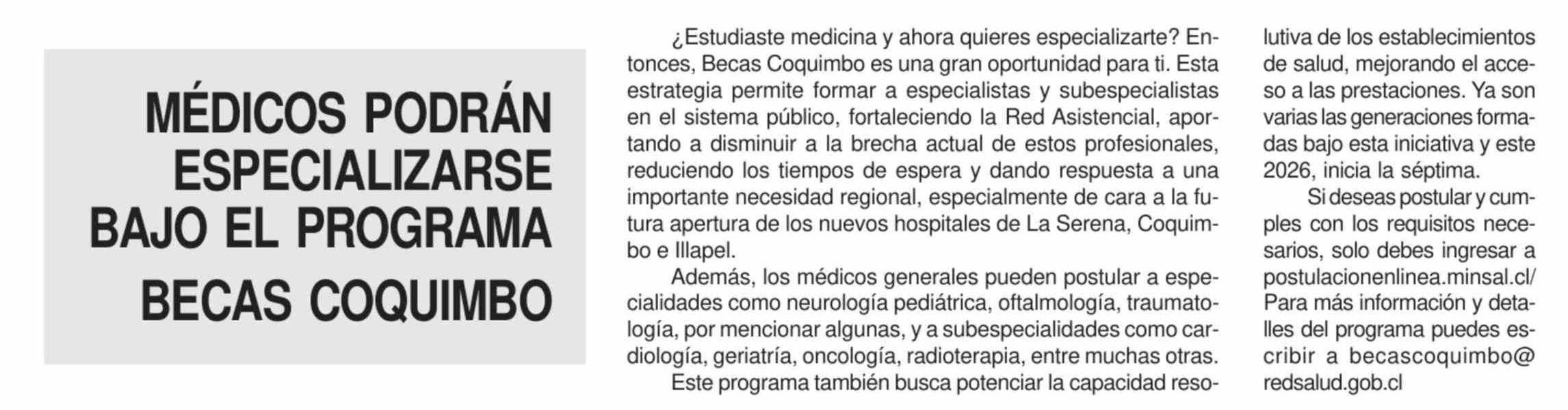 Título: MÉDICOS PODRÁN ESPECIALIZARSE BAJO EL PROGRAMA BECAS COQUIMBO