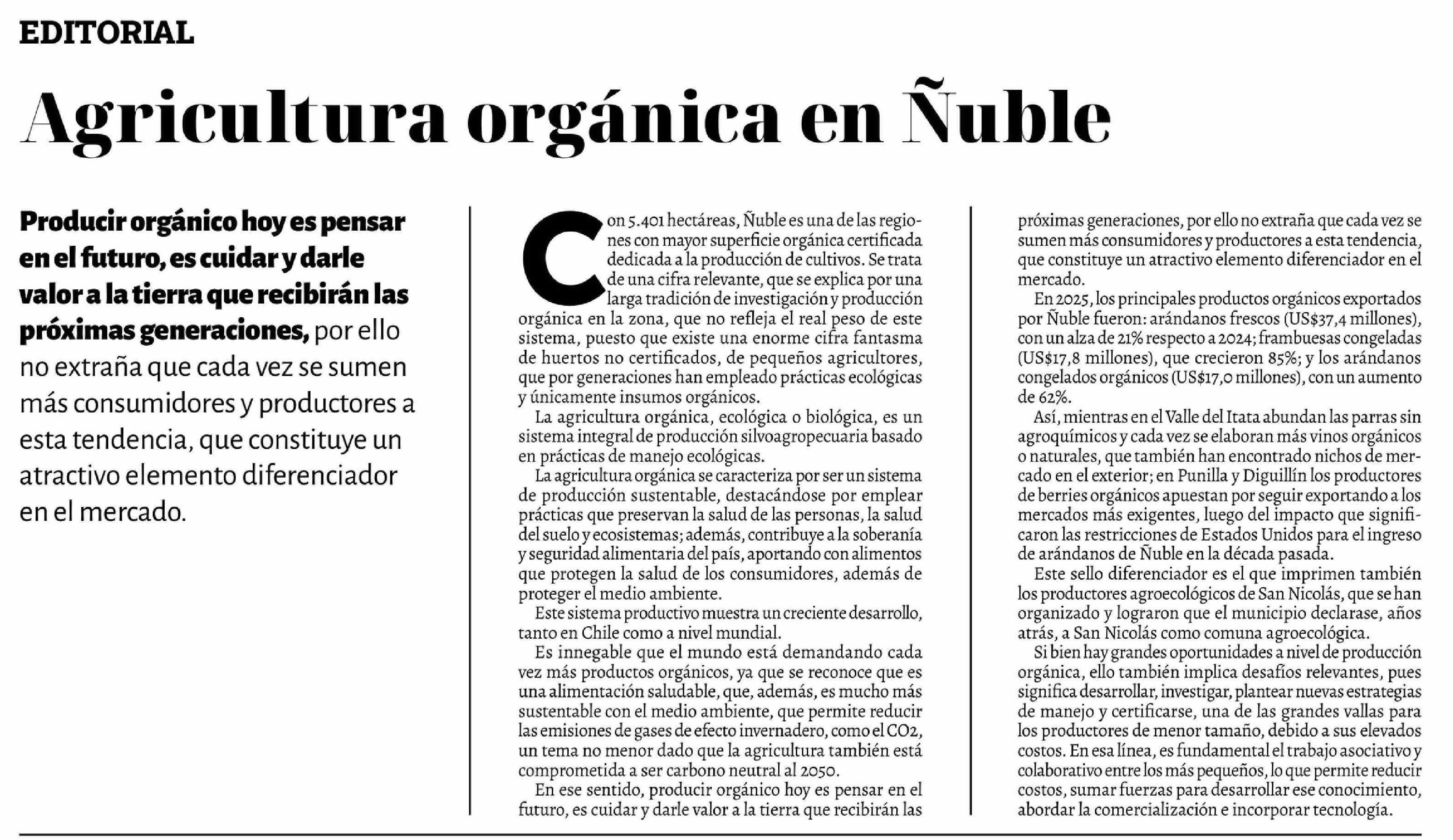 Fecha: 13-02-2026 Sector: Noticia general Región: Región del Ñuble