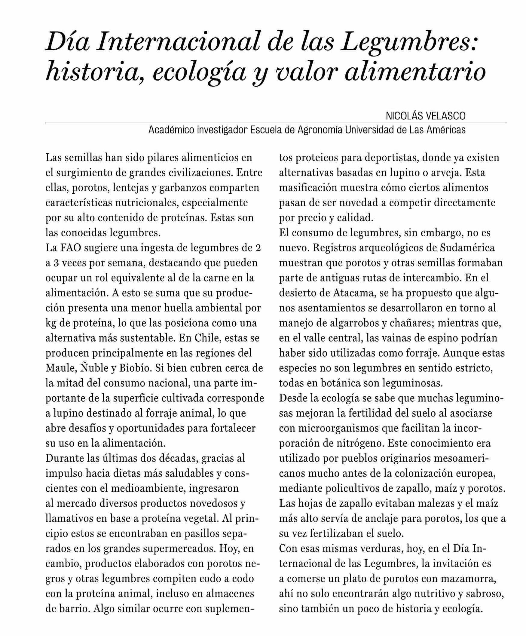 COLUMNAS DE OPINIÓN: historia, ecología y valor alimentario 07-02-2026 La Prensa de Curicó |