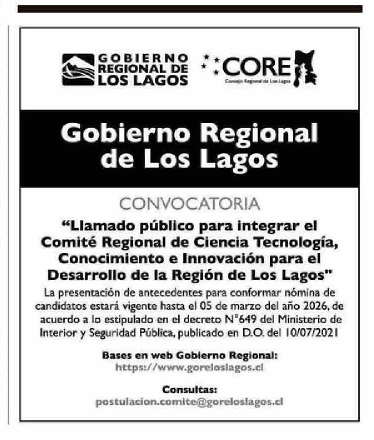 | Fecha: | 27-01-2026 | Sector: | Aviso Licitaciones | Región: | Región de Los Lagos |