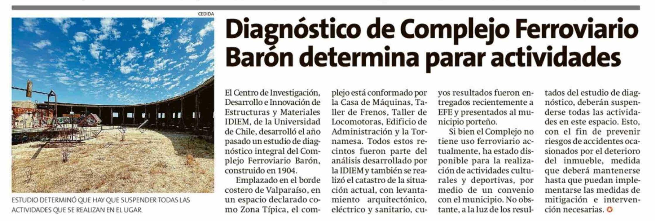 Diagnóstico de Complejo Ferroviario Barón determina parar actividades 09-03-2026 La Estrella de Valparaíso |