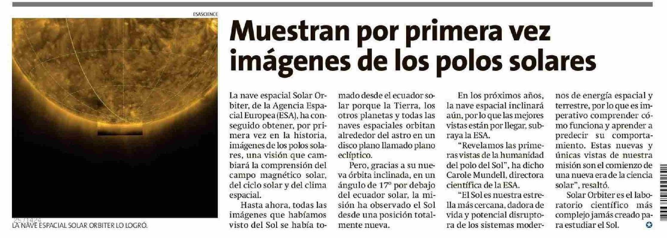 Muestran por primera vez imágenes de los polos solares 15-06-2025 El Líder |