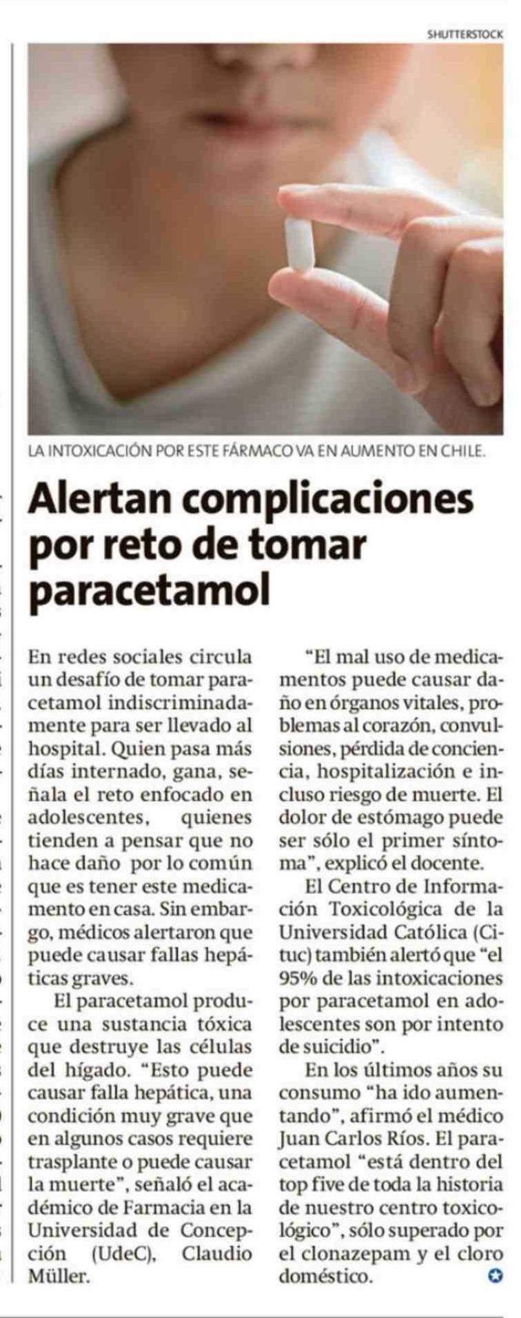 | Título: | Alertan complicaciones por reto de tomar paracetamol |