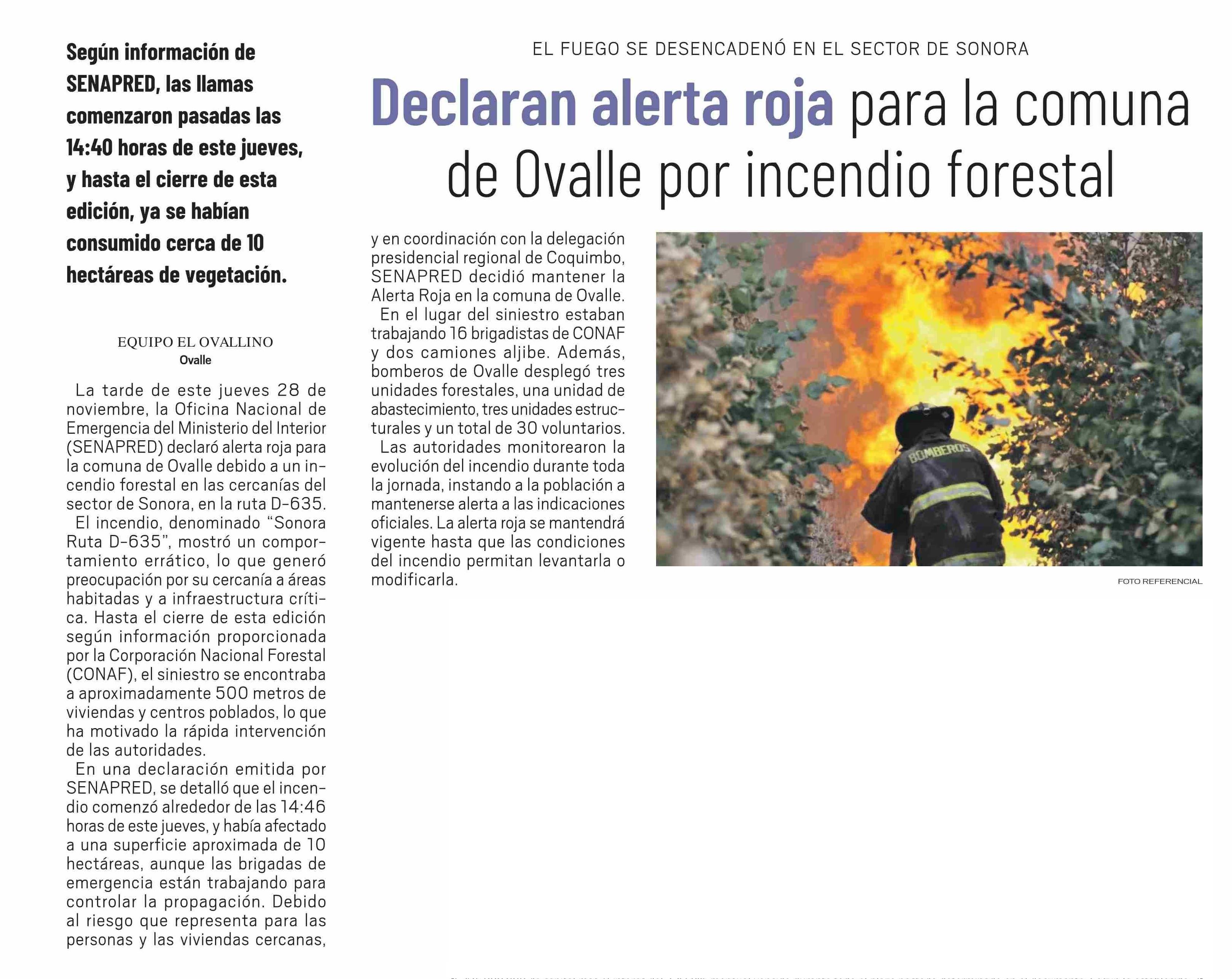 Declaran alerta roja para la comuna de Ovalle por incendio forestal 29-11-2024 El Ovallino |