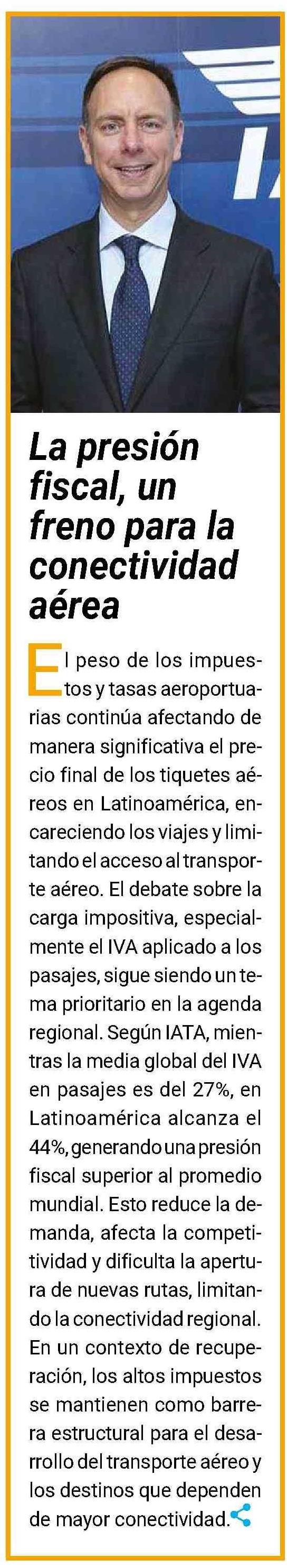 La presión fiscal, un freno para la conectividad aérea 13-04-2026 Revista La Agencia de Viajes |