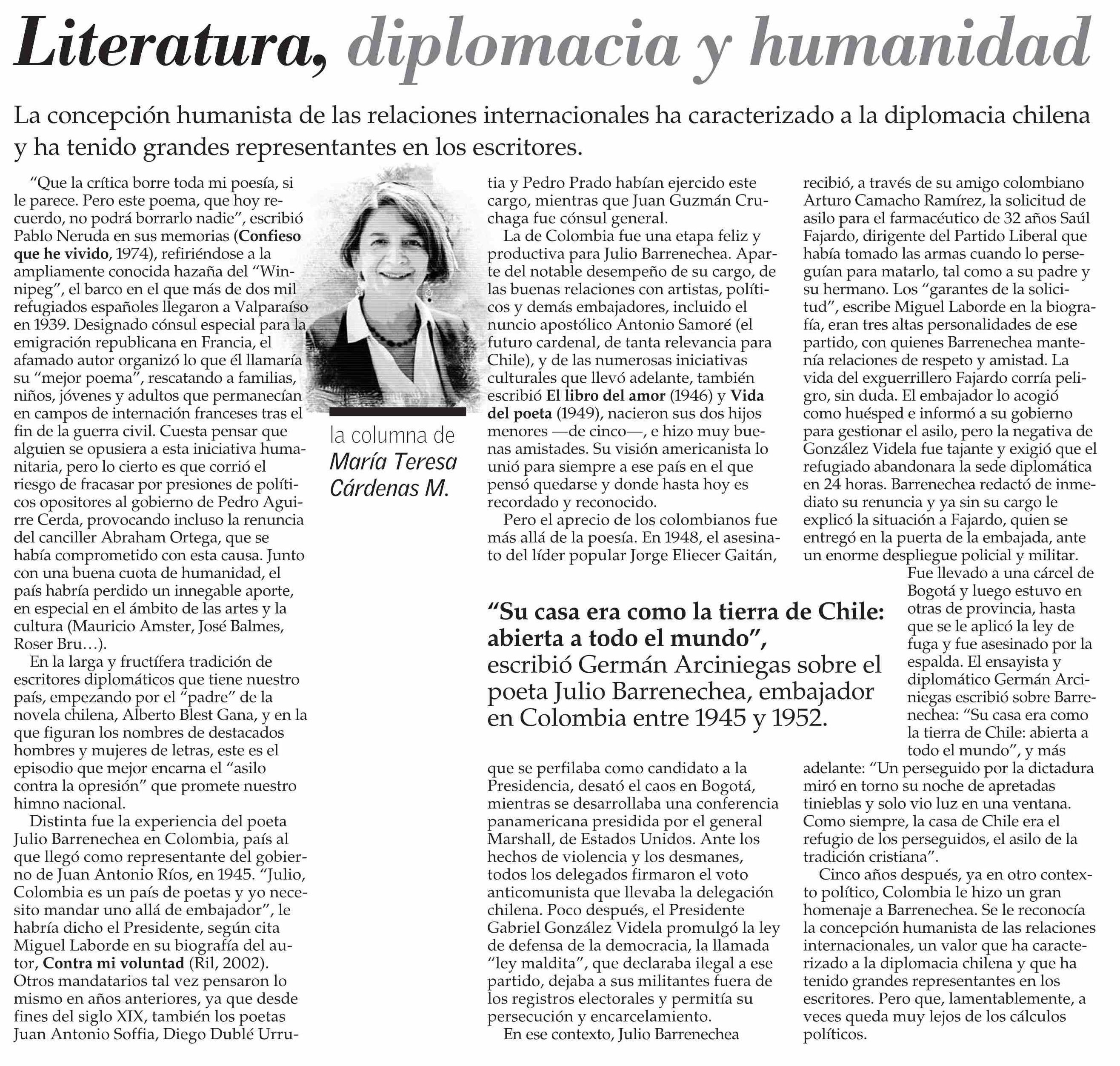 Columnas de Opinión: Literatura, diplomacia y humanidad 22-02-2026 El Mercurio |