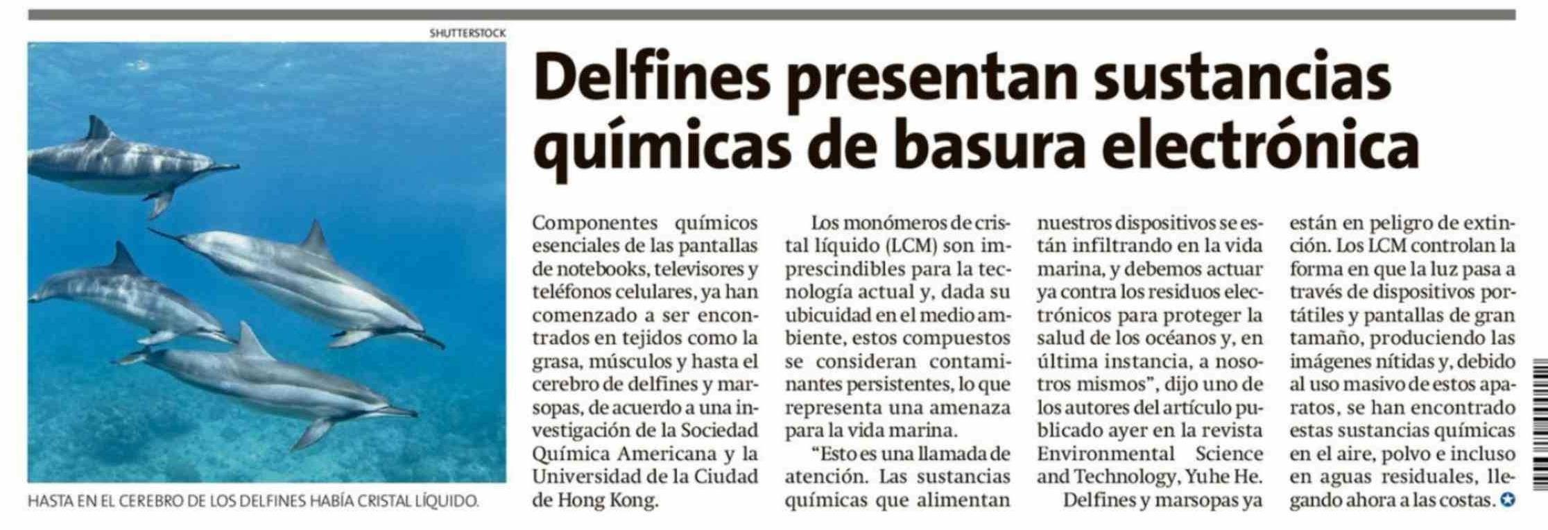 | Título: | Delfines presentan sustancias químicas de basura electrónica |