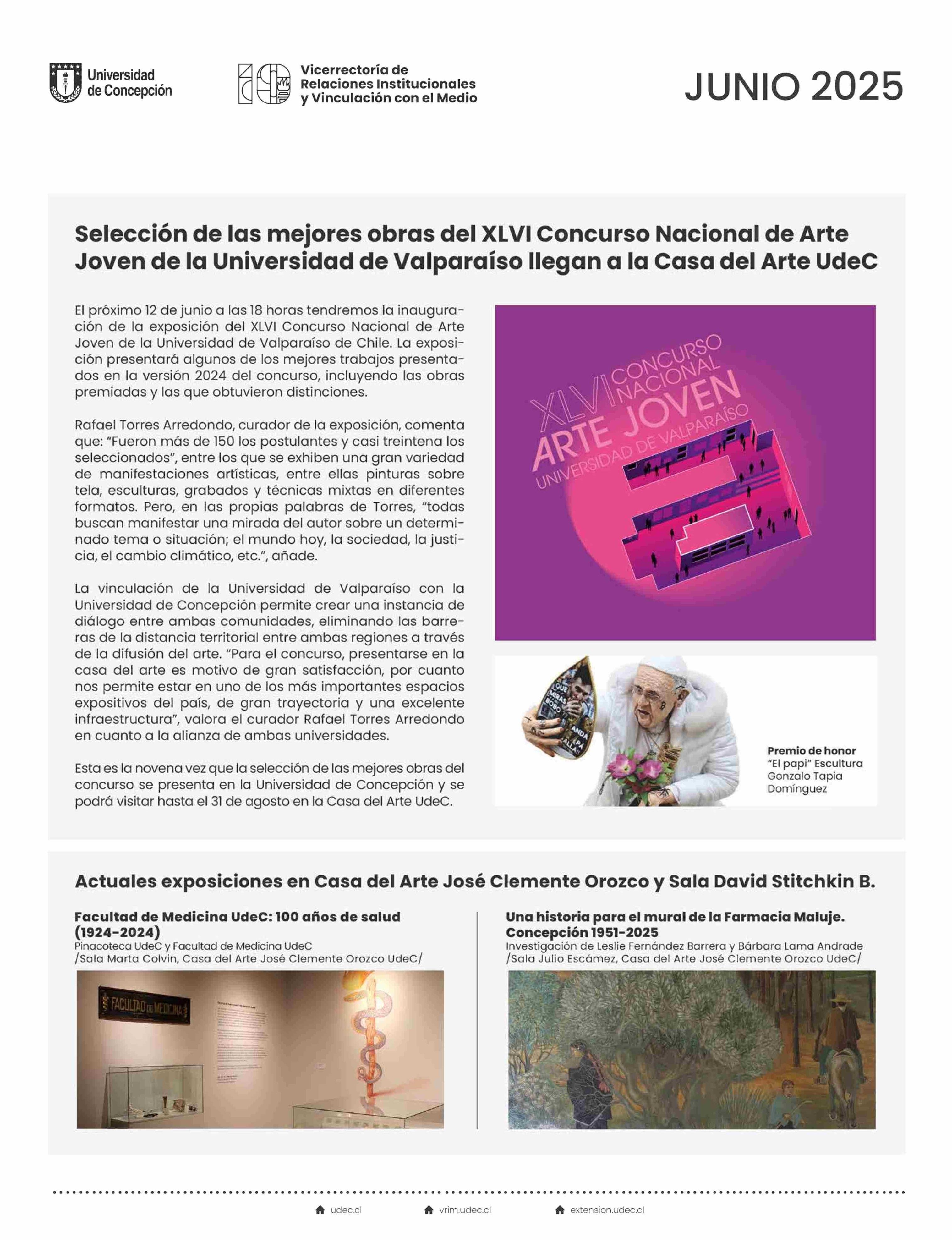 Selección de las mejores obras del XLVI Concurso Nacional de Arte Joven de la Universidad de Valparaíso llegan a la Casa del Arte UdeC 07-06-2025 Diario Concepción |