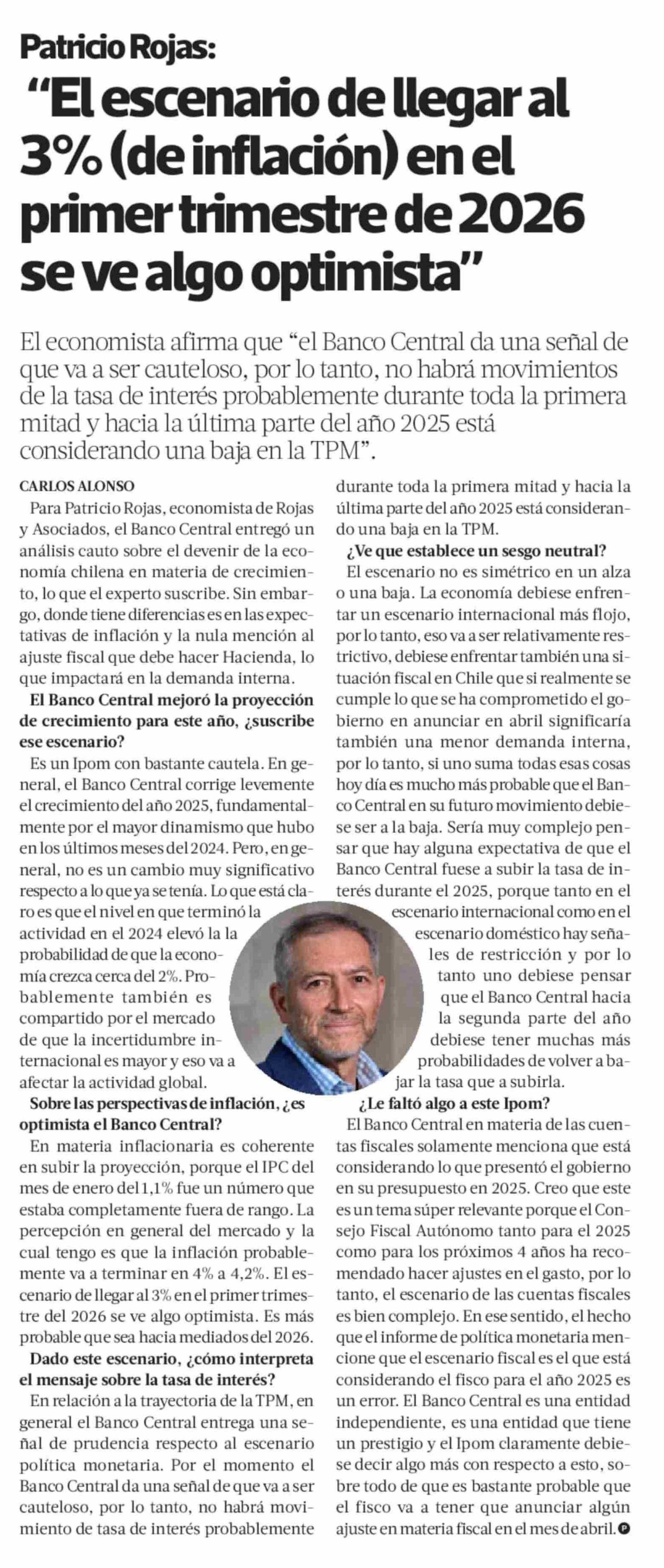 “El escenario de llegar al 3% (de inflación) en el primer trimestre de 2026 se ve algo optimista” 25-03-2025 La Tercera |