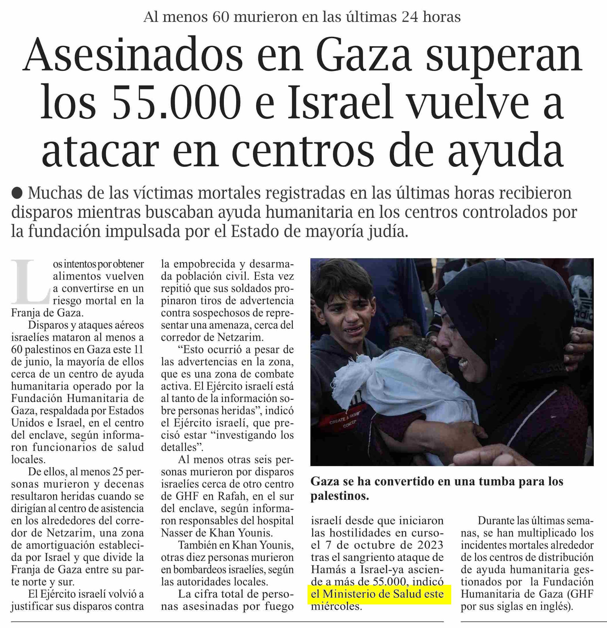 Asesinados en Gaza superan los 55.000 e Israel vuelve a atacar en centros de ayuda 12-06-2025 El Pingüino |