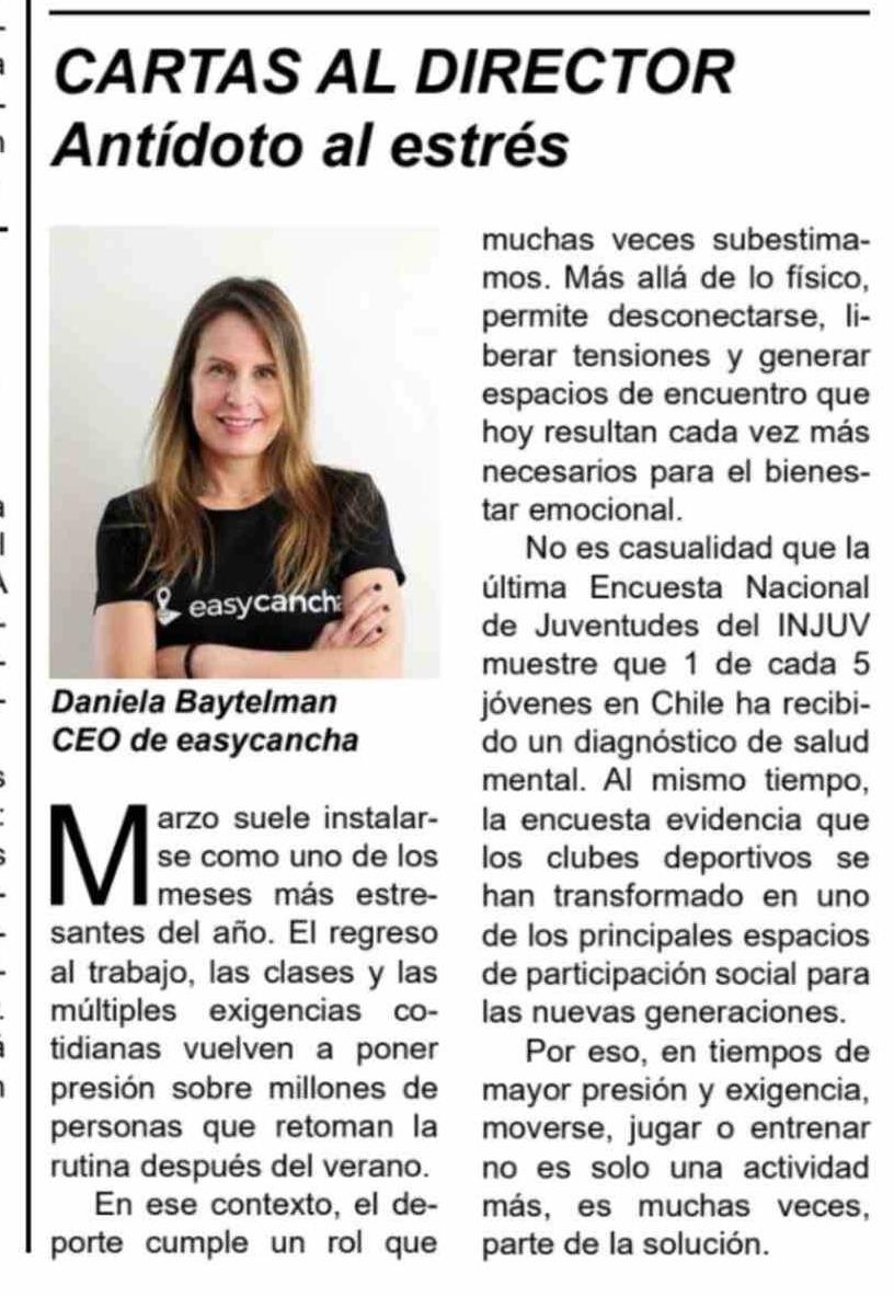 Cartas: CARTAS AL DIRECTOR Antídoto al estrés 14-03-2026 Diario El Cóndor |