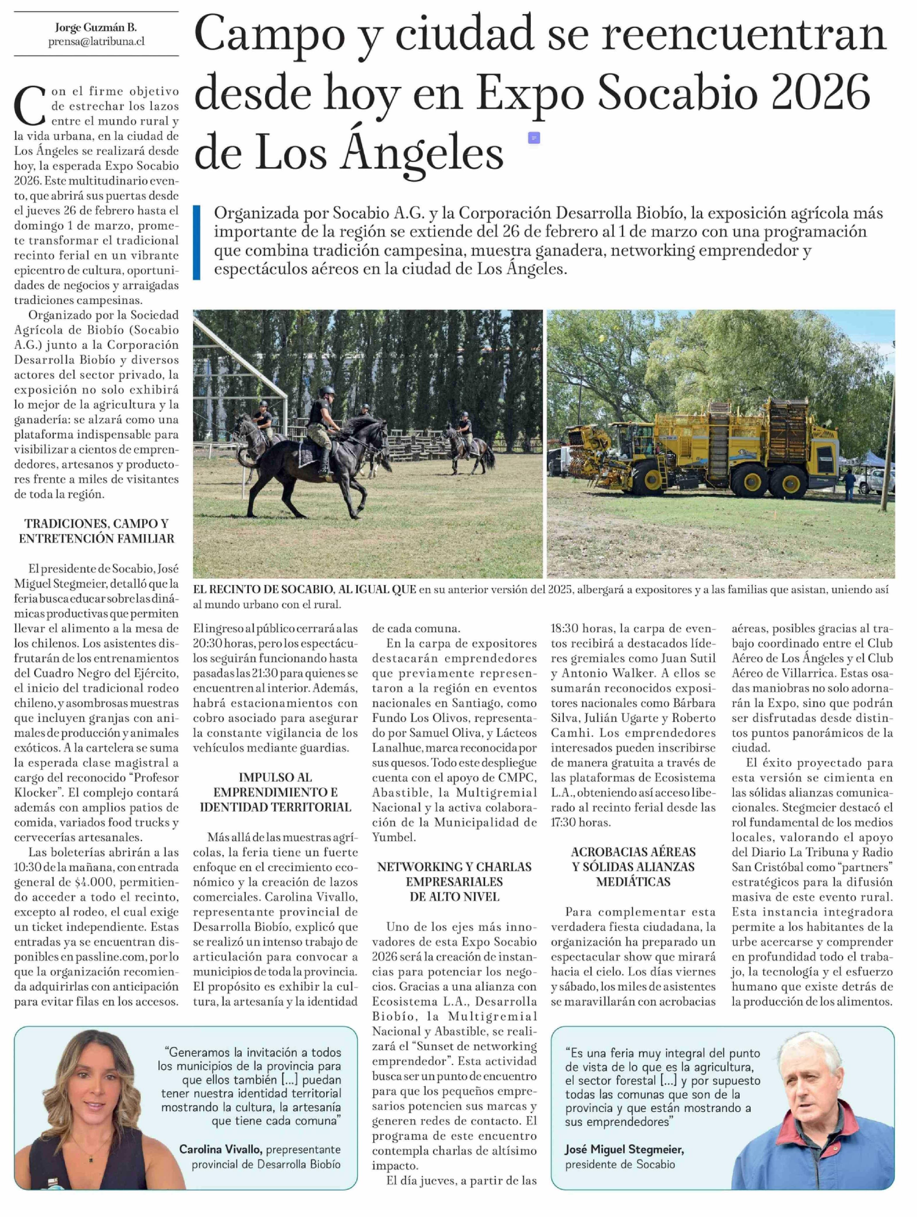 Título: Campo y ciudad se reencuentran desde hoy en Expo Socabio 2026 de Los Angeles