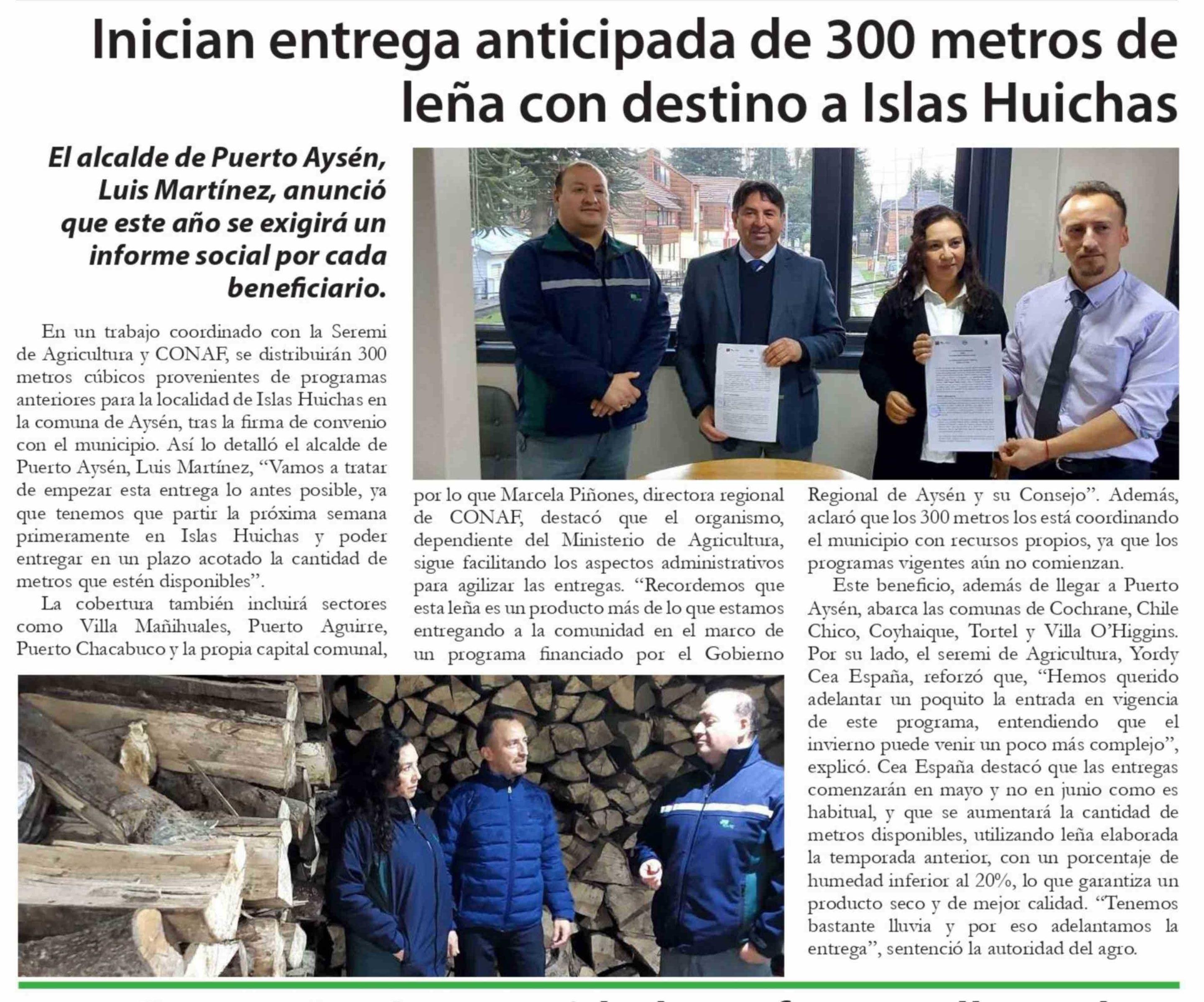 | Título: | Inician entrega anticipada de 300 metros de leña con destino a Islas Huichas |