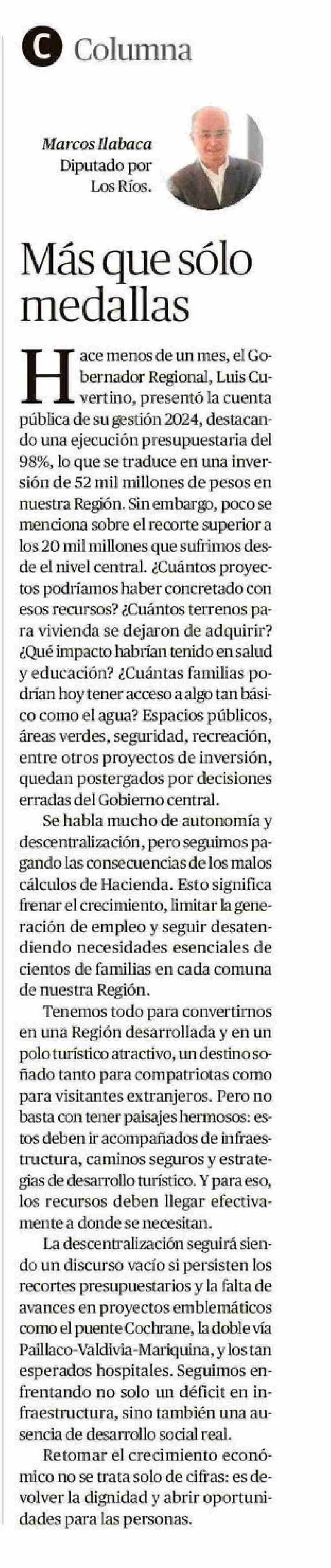 COLUMNAS DE OPINIÓN: Más que sólo medallas 18-06-2025 Diario Austral Región de Los Ríos |