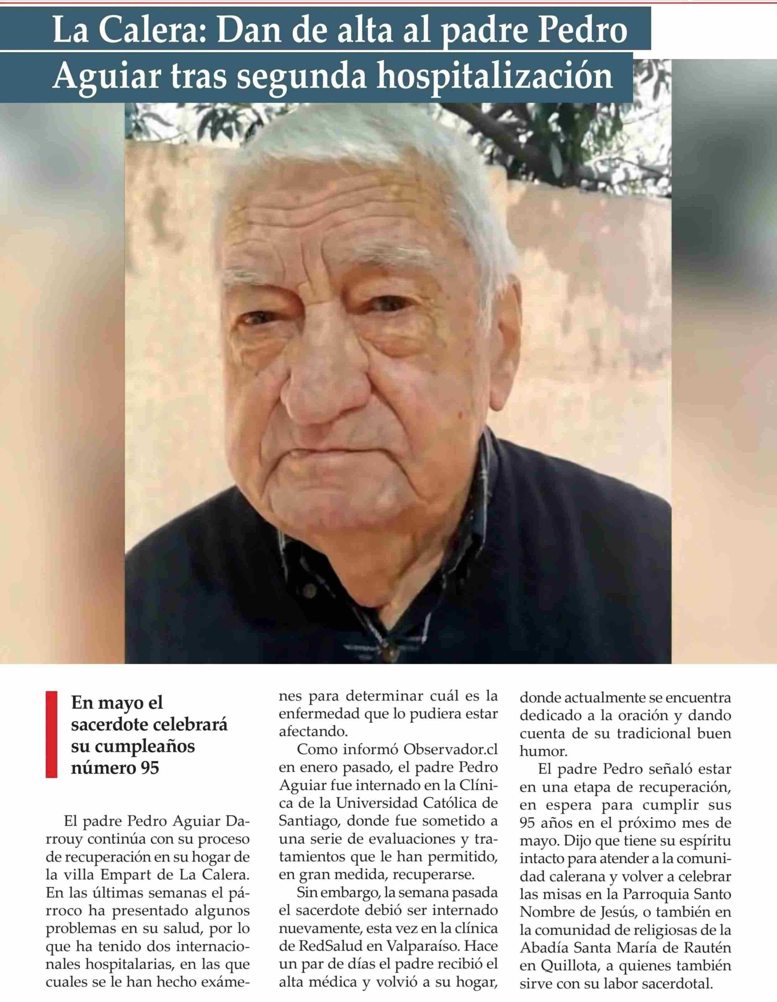 Título: La Calera: Dan de alta al padre Pedro Aguiar tras segunda hospitalización