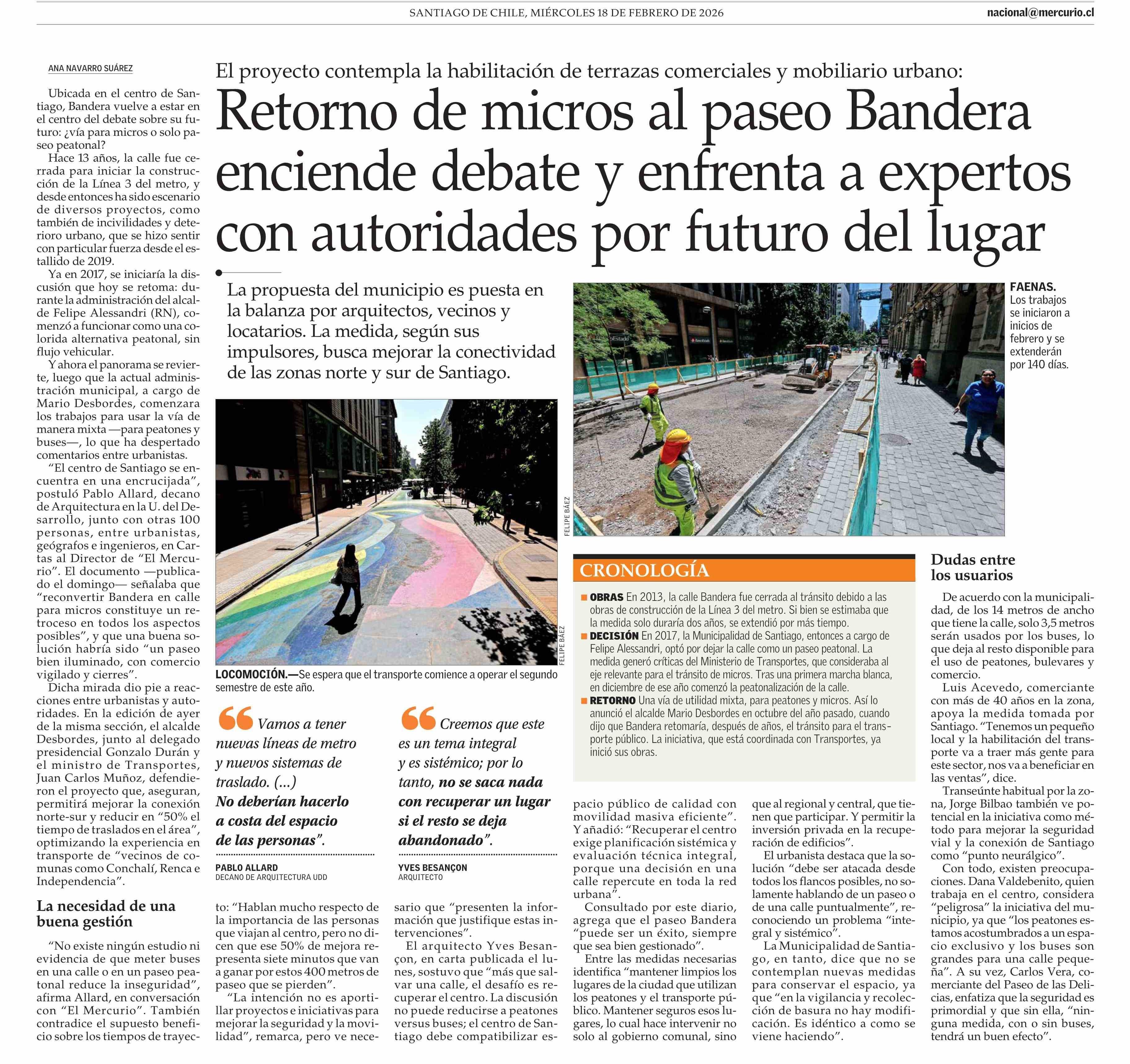 Retorno de micros al paseo Bandera enciende debate y enfrenta a expertos con autoridades por futuro del lugar 18-02-2026 El Mercurio |