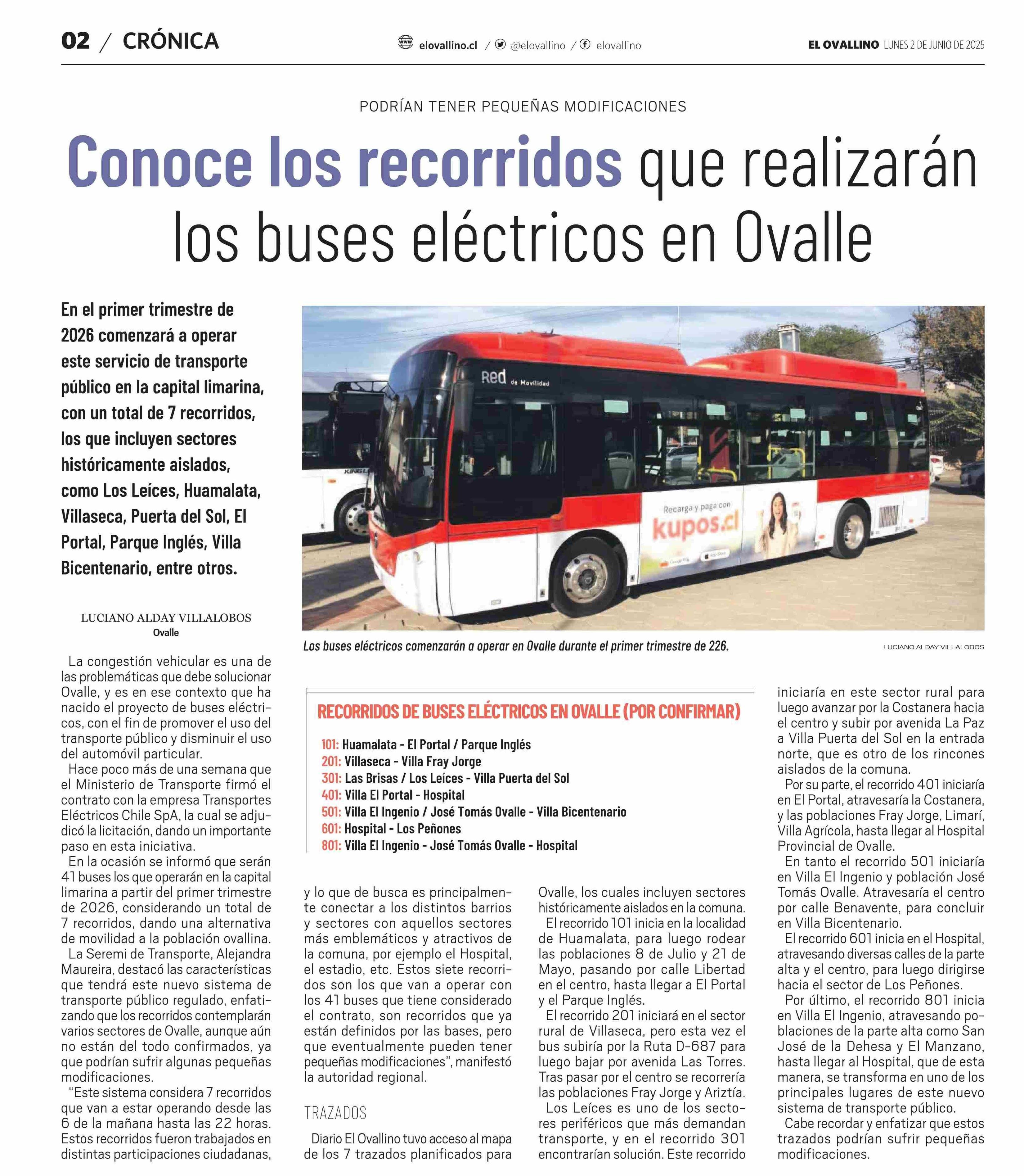 Conoce los recorridos que realizarán los buses eléctricos en Ovalle 02-06-2025 El Ovallino |