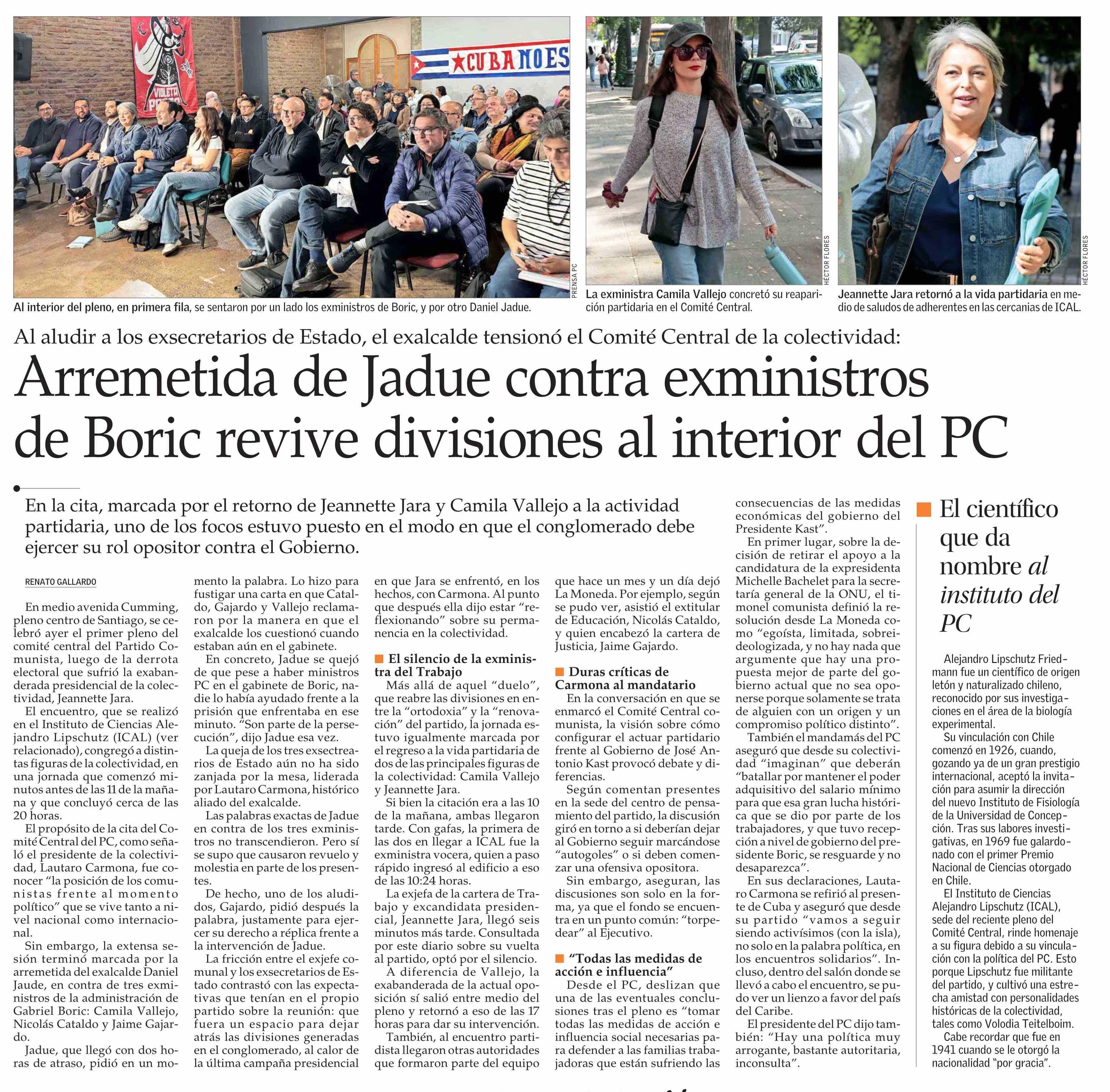 | Título: | Arremetida de Jadue contra exministros de Boric revive divisiones al interior del PC |