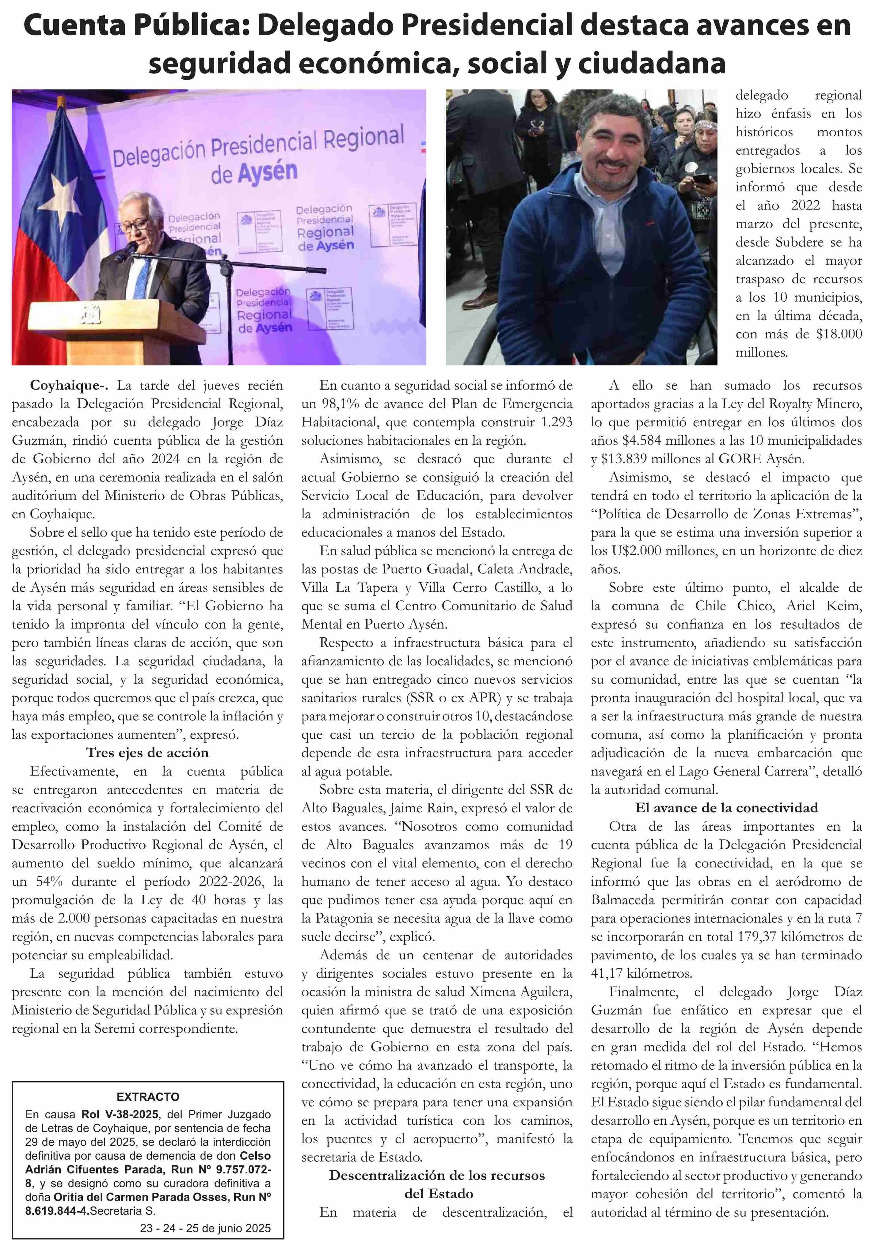 | Fecha: | 23-06-2025 | Sector: | Noticia general | Región: | Región Aysén del General Carlos Ibáñez del Campo |