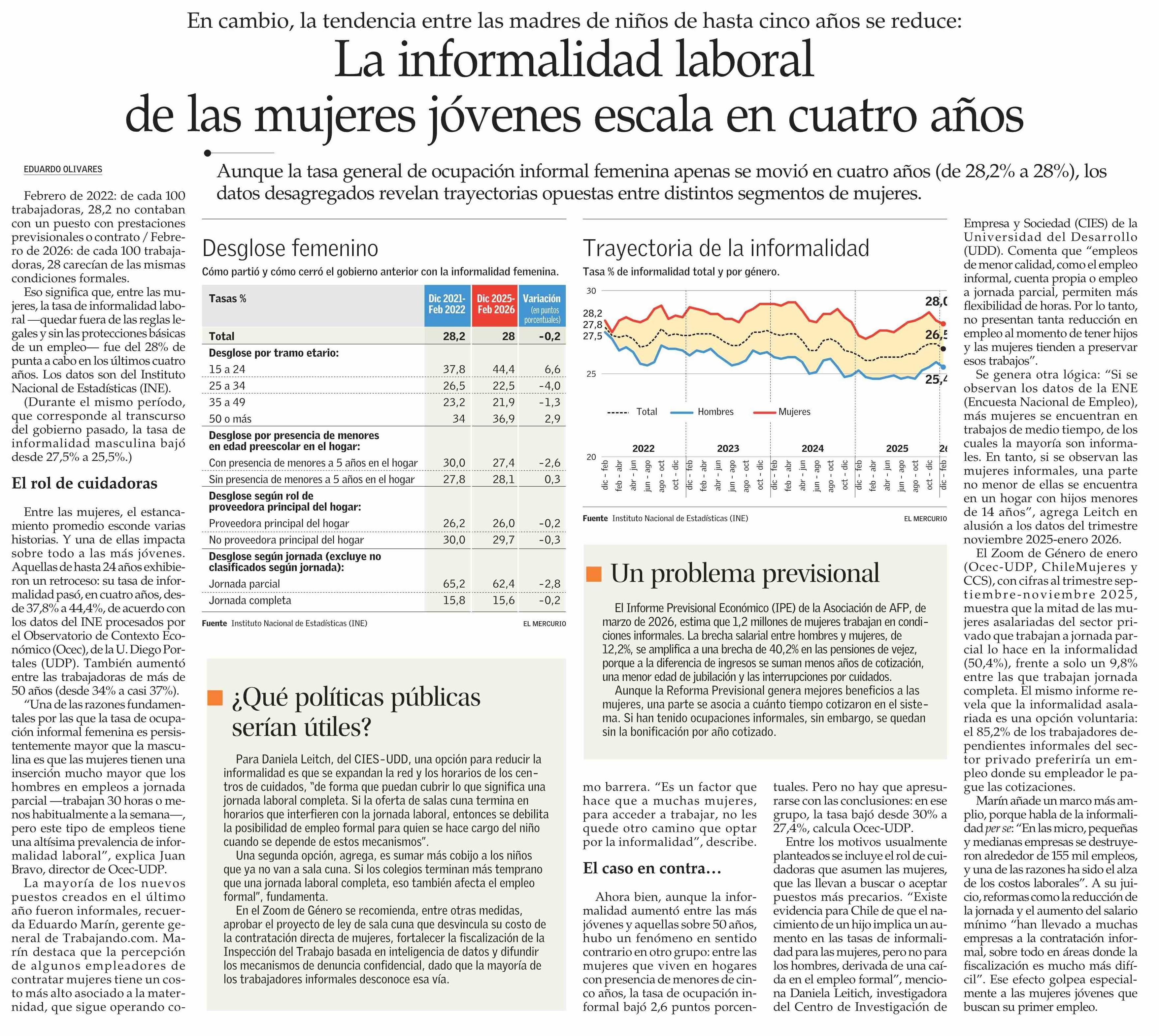 La informalidad laboral de las mujeres jóvenes escala en cuatro años 06-04-2026 El Mercurio |