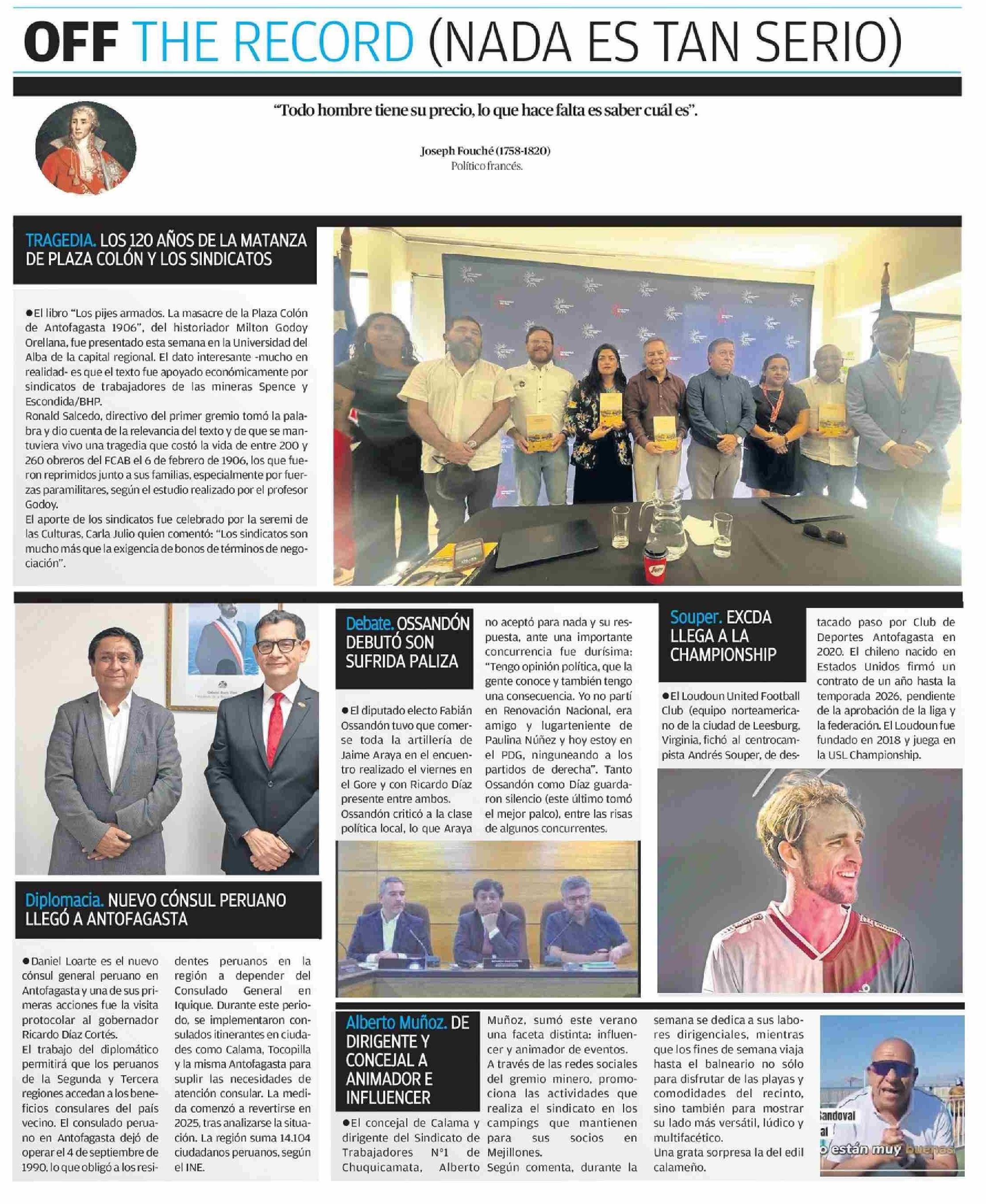 OFF THE RECORD (NADA ES TAN SERIO) 08-02-2026 El Mercurio de Calama |