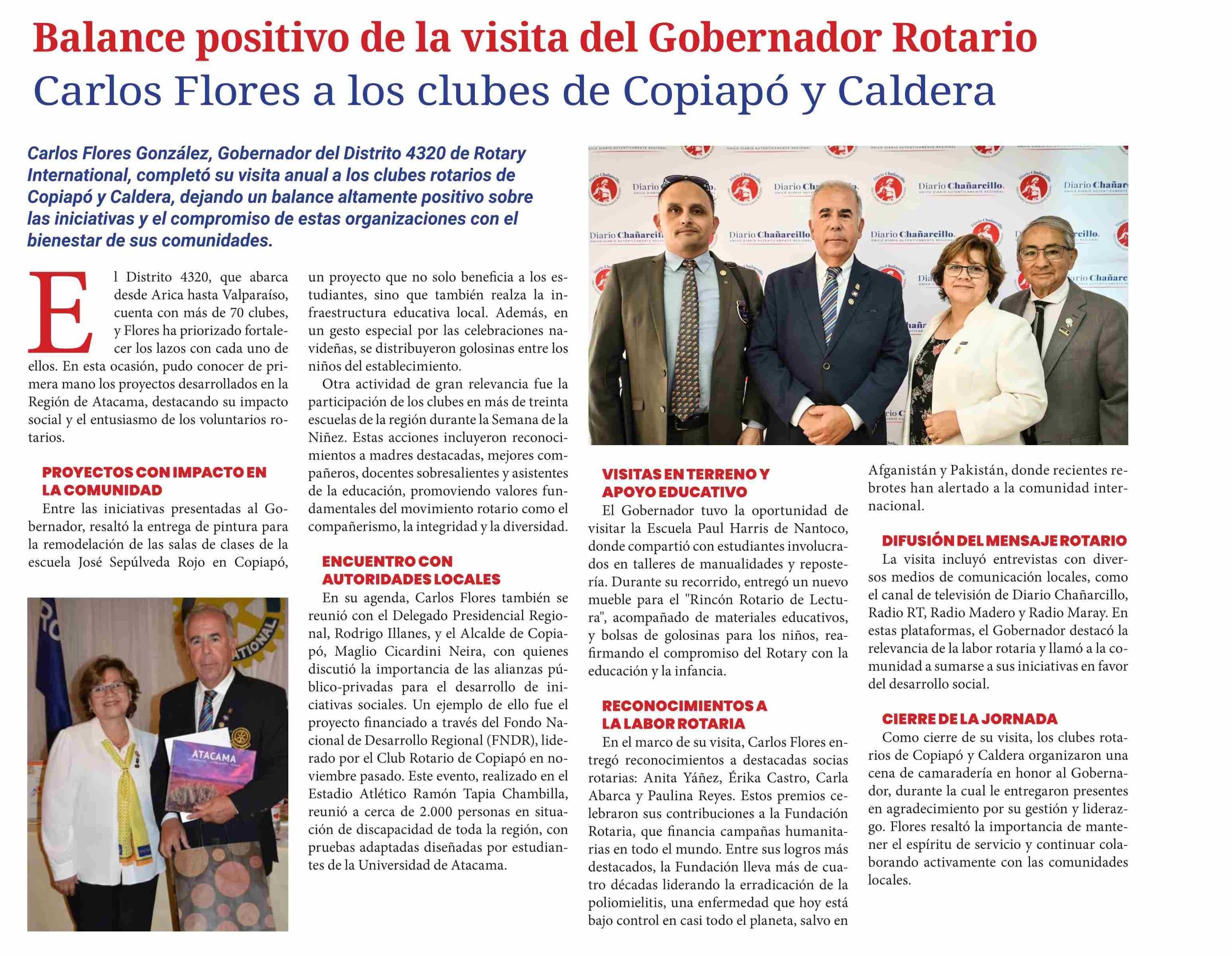 Balance positivo de la visita del Gobernador Rotario Carlos Flores a los clubes de Copiapó y Caldera 05-01-2025 Diario Chañarcillo |