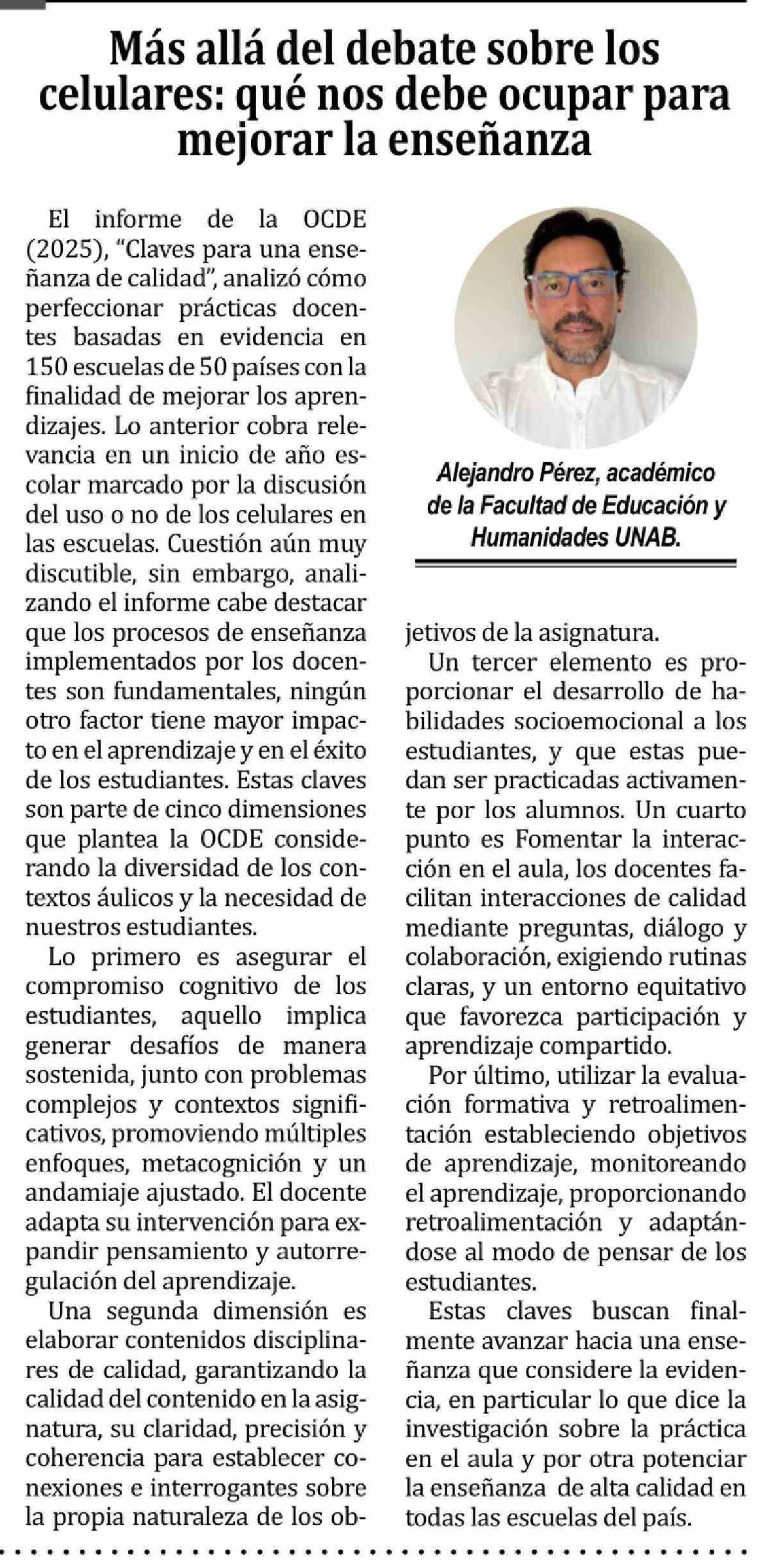 Título: Columnas de Opinión: Más allá del debate sobre los celulares: qué nos debe ocupar para mejorar la enseñanza