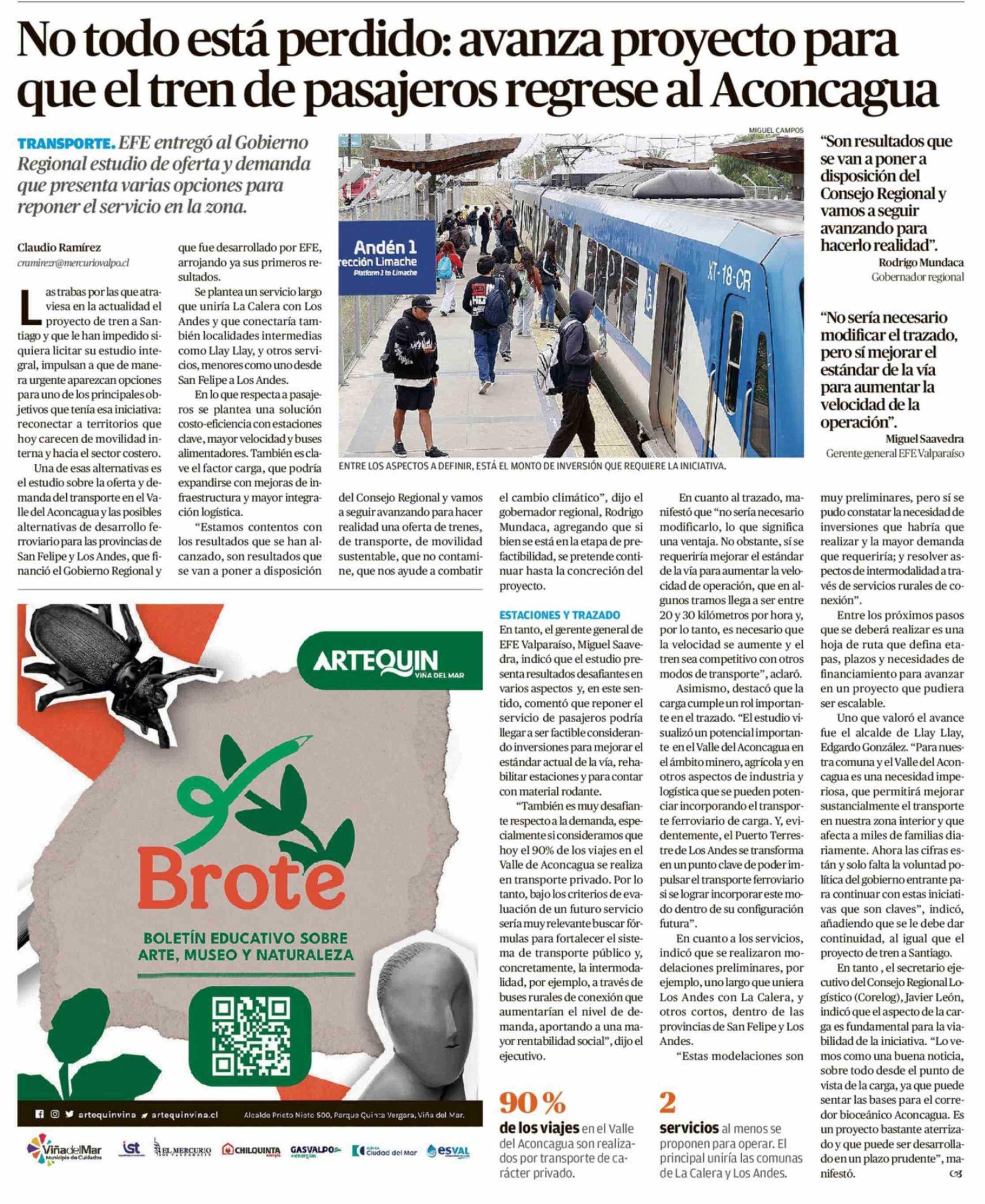 No todo está perdido: avanza proyecto para que el tren de pasajeros regrese al Aconcagua 28-02-2026 El Mercurio de Valparaíso |