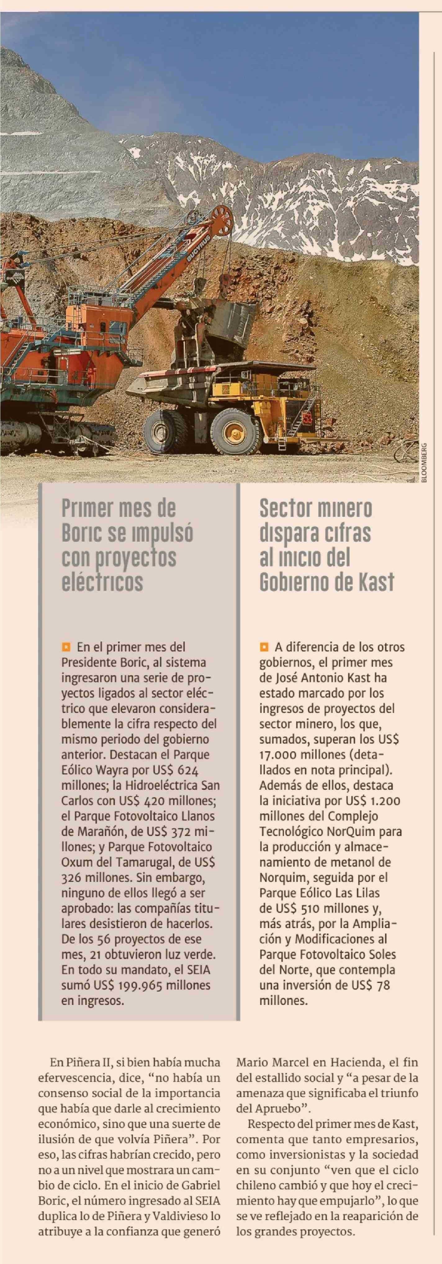 Primer mes de Kast rompe récord de inversión en el SEIA, pese a menor número de proyectos que en otros gobiernos 10-04-2026 Diario Financiero |