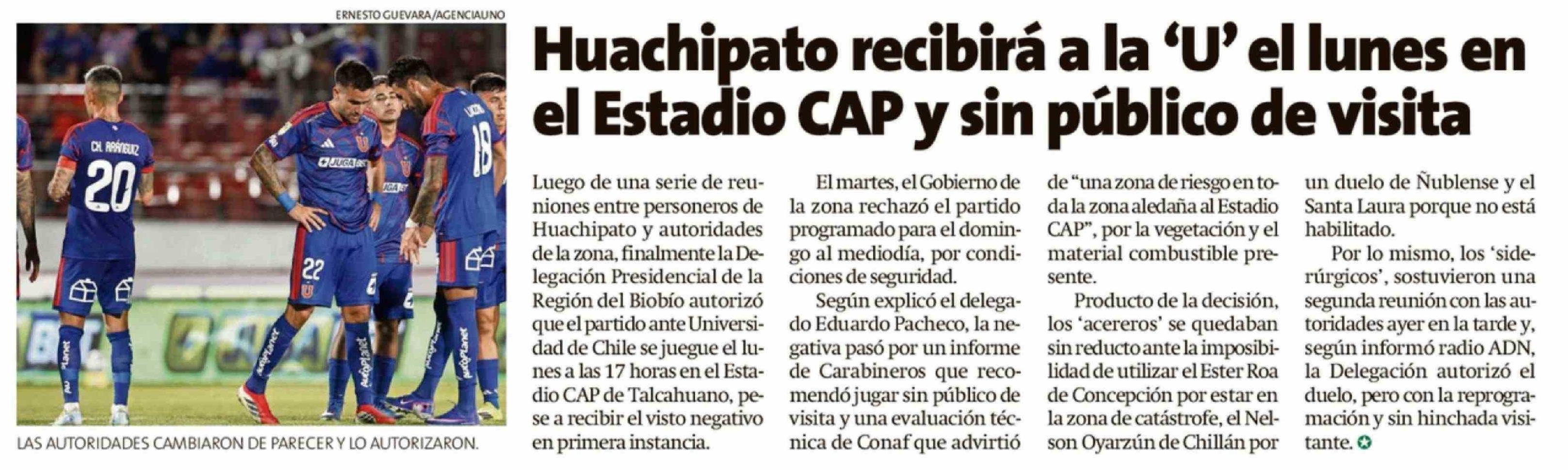Huachipato recibirá a la 'U' el lunes en el Estadio CAP y sin público de visita 05-02-2026 La Estrella de Chiloé |