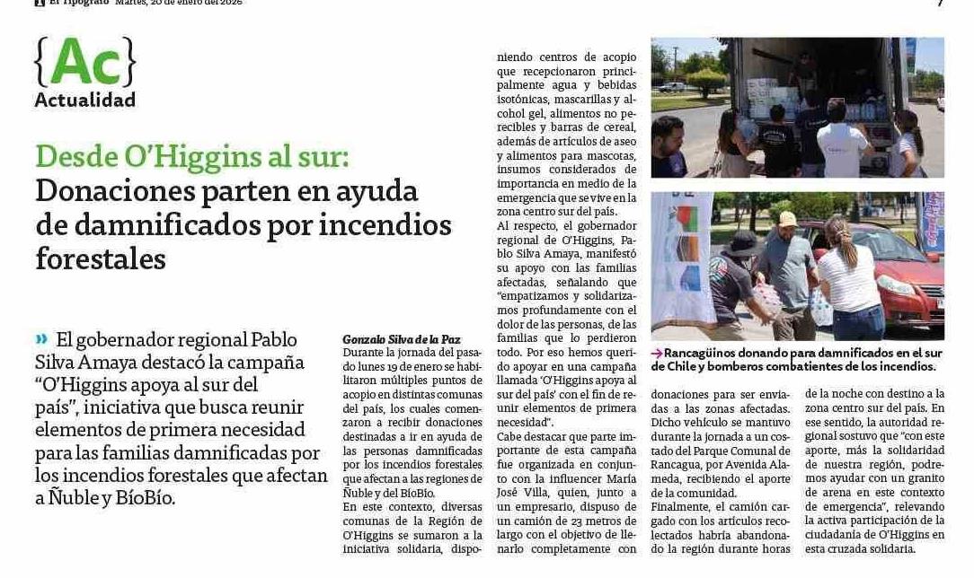 Fecha: 20-01-2026 Sector: Noticia general Región: Región del Libertador General Bernardo O'Higgins