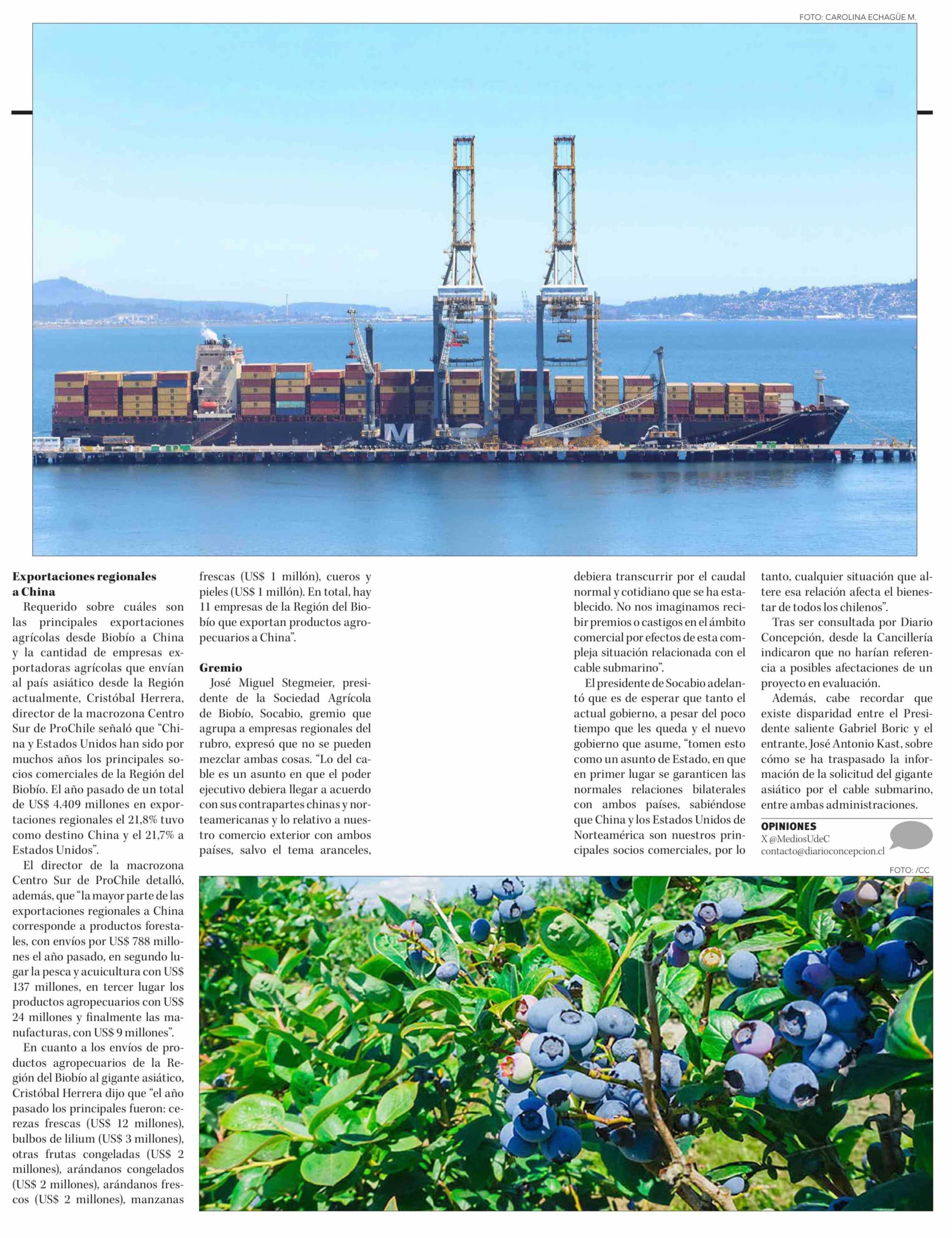 Título: Biobío: descartan eventual afectación en exportaciones por caso del "Cable Chino"