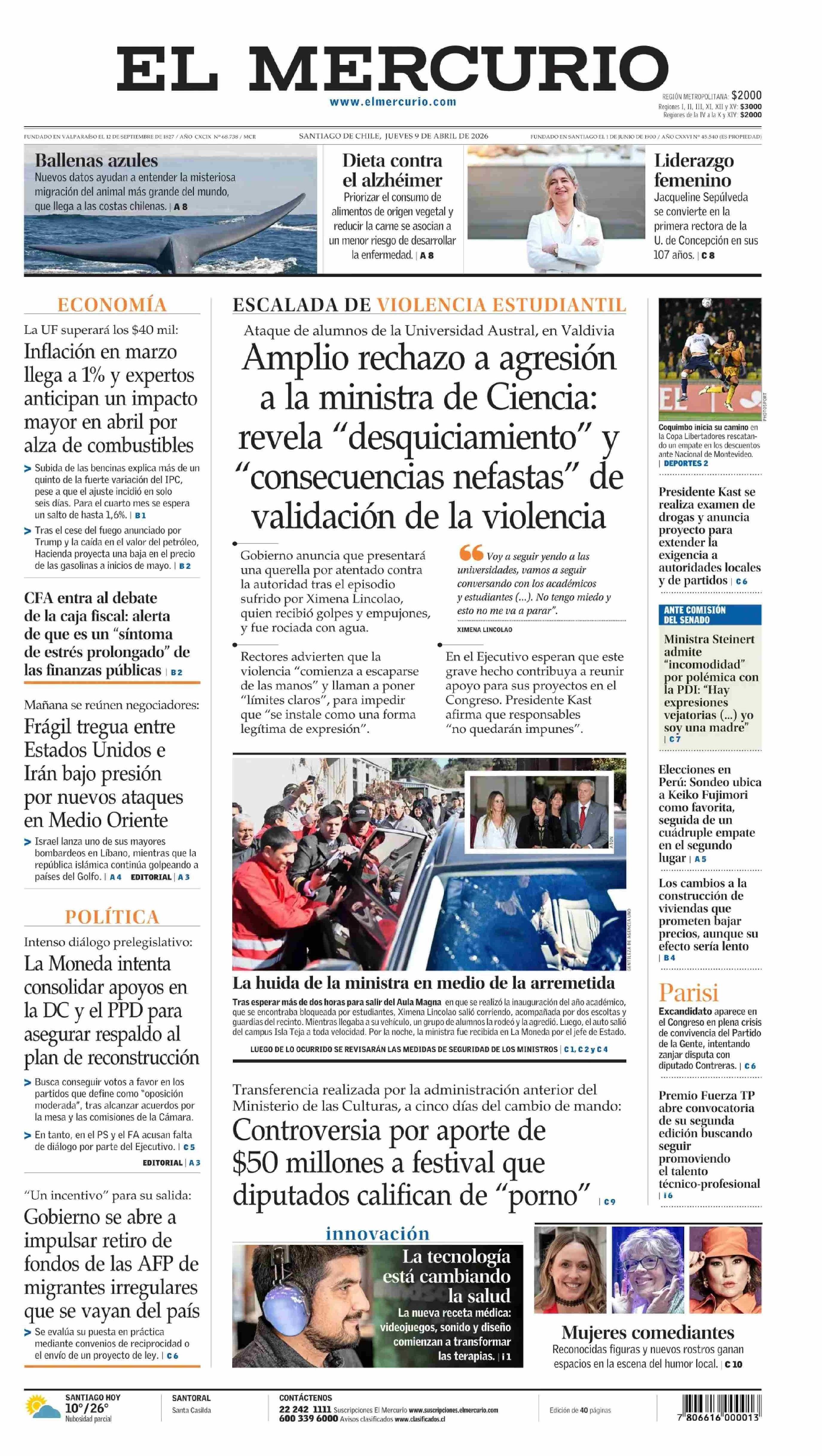 Fecha: 09-04-2026 Sector: Portada Región: Región Metropolitana de Santiago