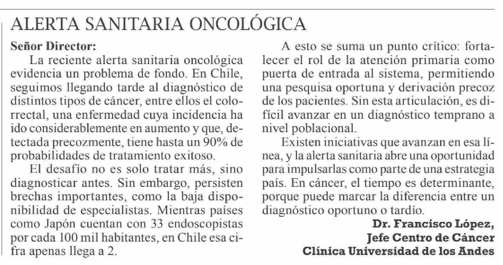 Cartas: ALERTA SANITARIA ONCOLÓGICA 16-04-2026 El Pingüino |
