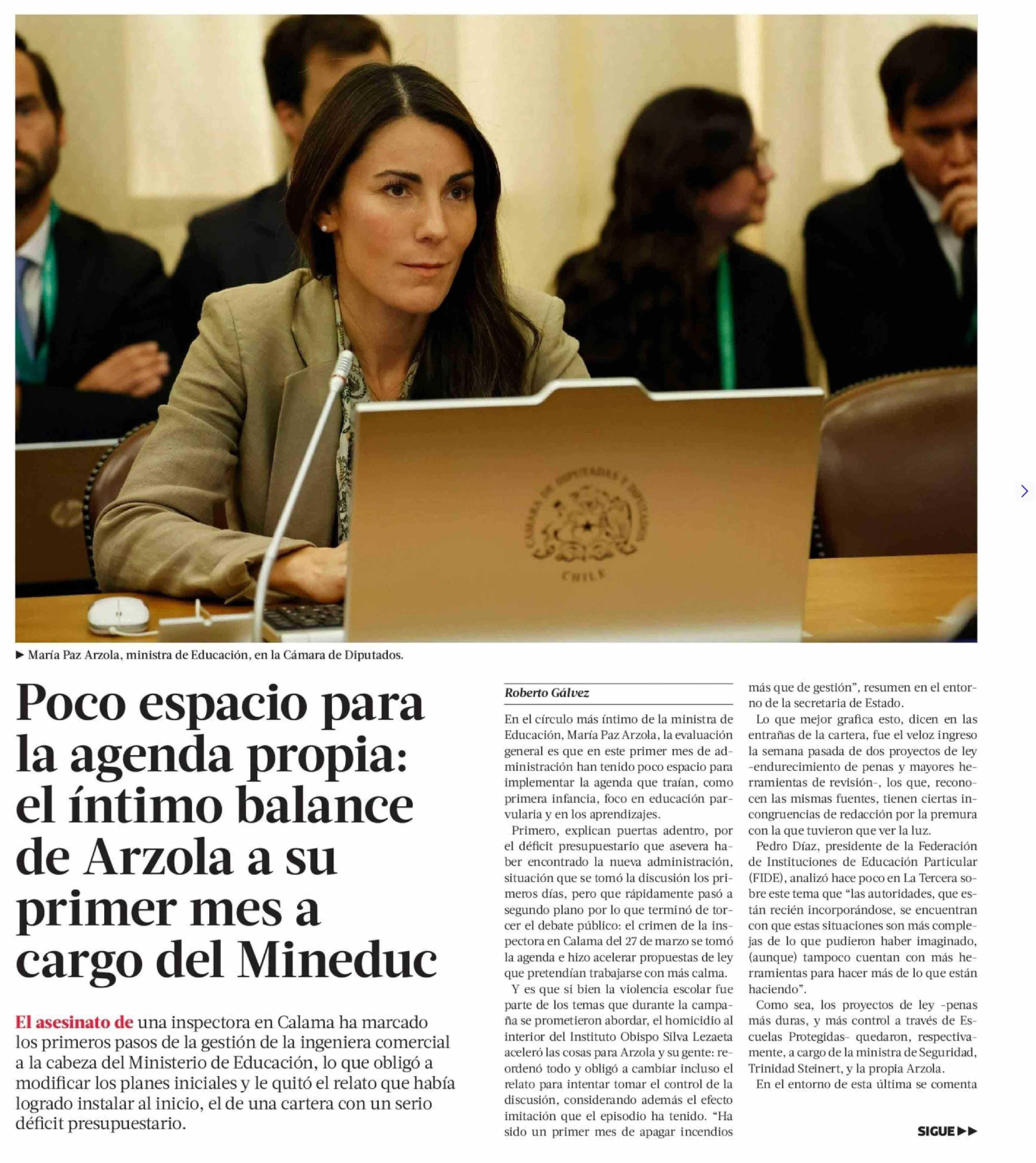 Título: Poco espacio para la agenda propia: el íntimo balance de Arzola a su primer mes a cargo del Mineduc